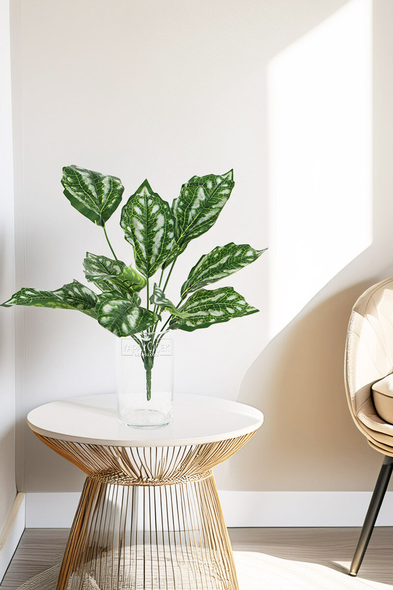 Yapay Bitki 12 Yapraklı Damalı Model Bitki, doğal bitkilerin estetik çekiciliğini ve canlılığını yansıtan, 45 cm yüksekliğinde, bakımı son derece kolay bir dekoratif üründür. Kraton bitkilerinin karakteristik geniş yaprak yapısını ve renk geçişlerini birebir taklit ederken, yapay olması sayesinde sulama, gübreleme gibi bakım gerektirmez. Özellikle iç mekanlarda doğal bir atmosfer yaratmak isteyenler için ideal bir seçenek olan bu yapay bitki, uzun ömürlüdür ve evinizin veya ofisinizin dekorasyonuna zarif bir dokunuş katar. Zarif dalları ve canlı renkleriyle, her türlü iç mekan tasarımına mükemmel uyum sağlar.