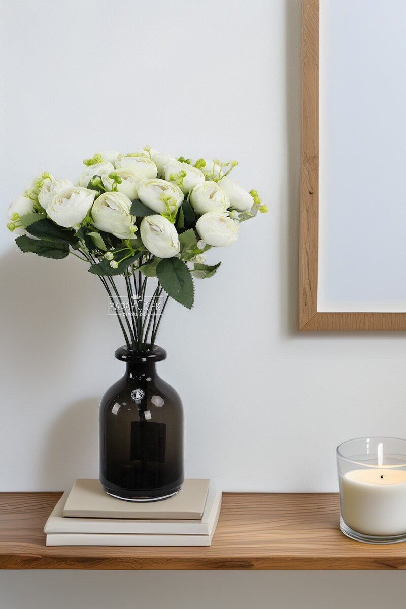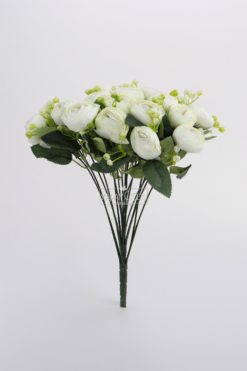 Yapay Çiçek 18li Garnitürlü Şakayık Gül Demeti 40 cm Beyaz
