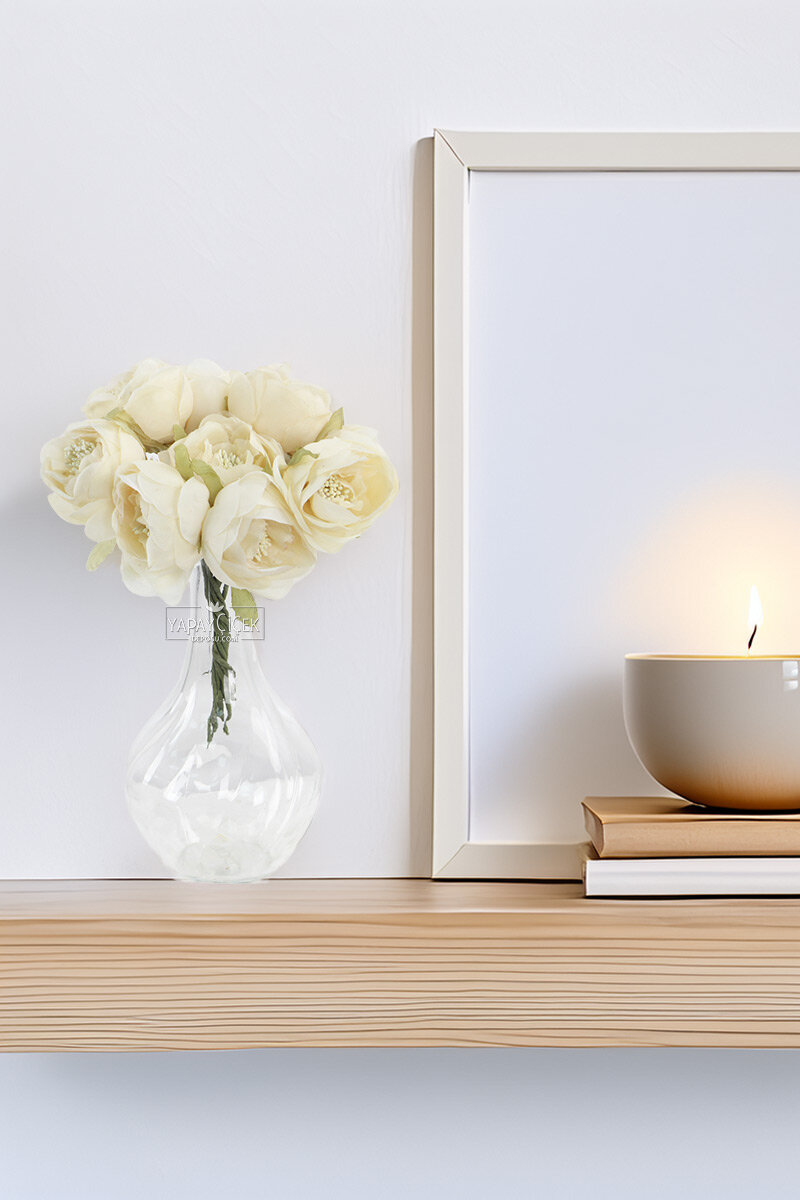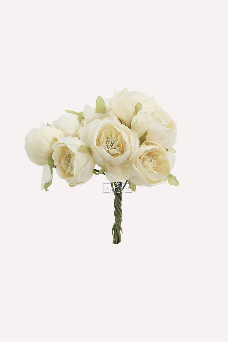 Yapay çiçek 7li Tohumlu Tül ipek şakayık Gül Demeti Krem 18 cm