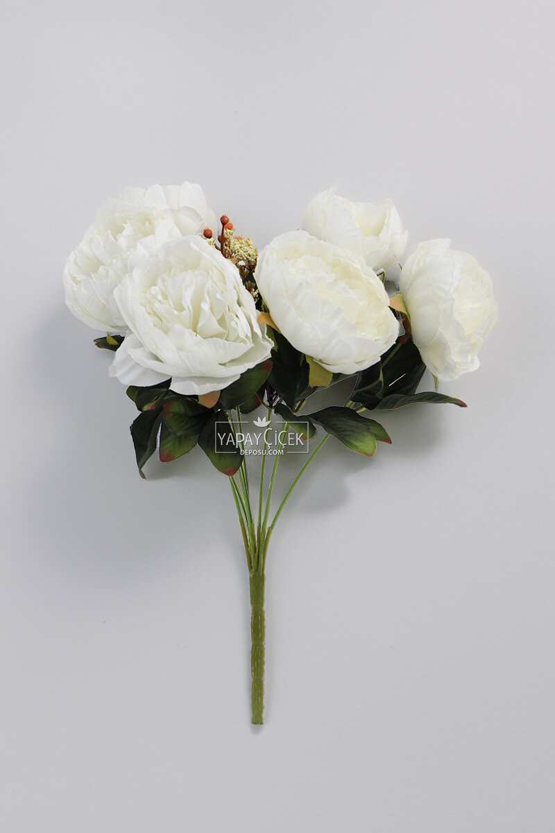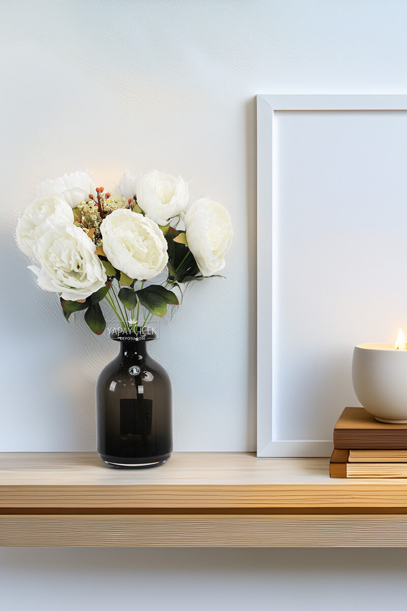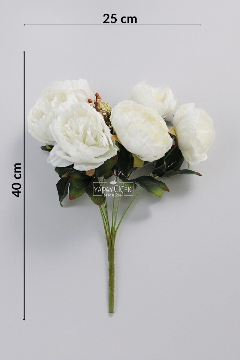 Yapay Çiçek 9lu Garnitürlü Şakayık Gül Demeti 40 cm Beyaz
