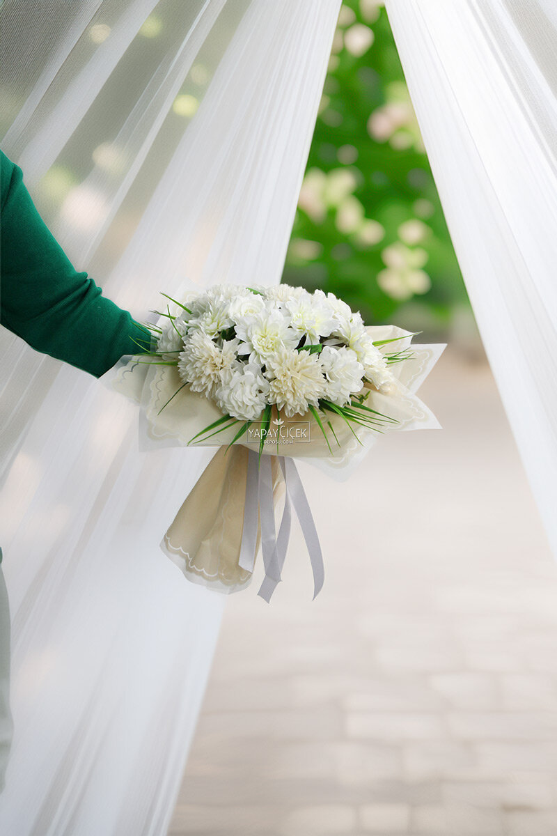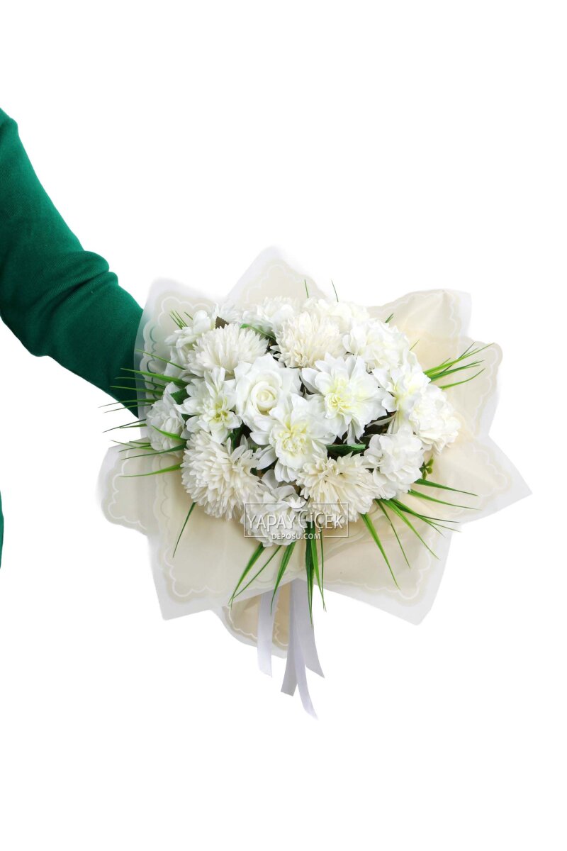 Özel günlerinize zarif ve romantik bir dokunuş katacak Beyaz yapay gelin buketi, göz alıcı renkleri ve şık tasarımıyla unutulmaz anlarınıza eşlik edecek. Yapay çiçek olması sayesinde yıllarca bozulmadan saklanabilir, böylece söz, nişan, isteme gibi özel anlarınızı her zaman hatırlatacak değerli bir hatıra olarak kalır. Estetik ve zarif görünümüyle her konsepte uyum sağlayan bu buket, romantizmin ve zarafetin mükemmel birleşimini sunuyor. Buketim çapı 36 cm Buketin Yüksekliği 65 cm