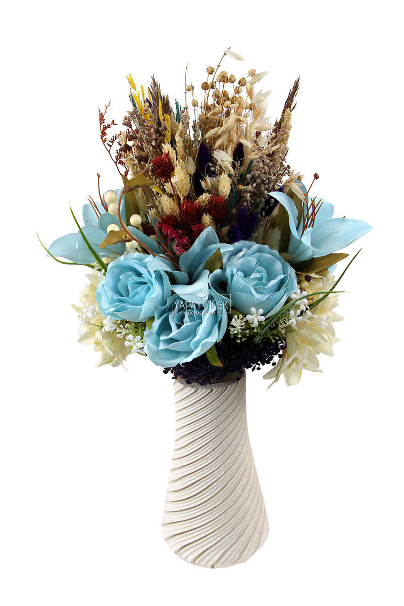 - Ürün İsmi: Beyaz Sarmal Vazoda Safir Güz Tanzimi
