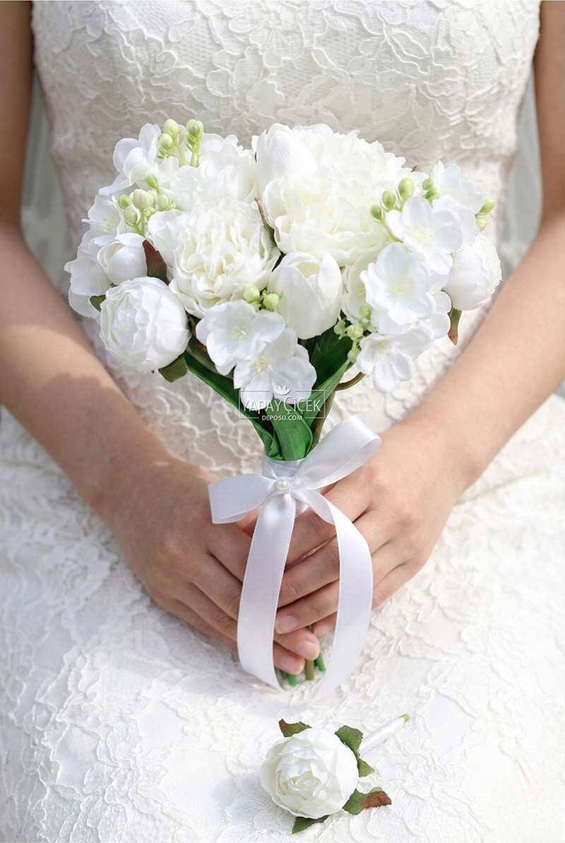 Beyaz Yelken Şakayık-Lale Gelin Buketi 2’li Set