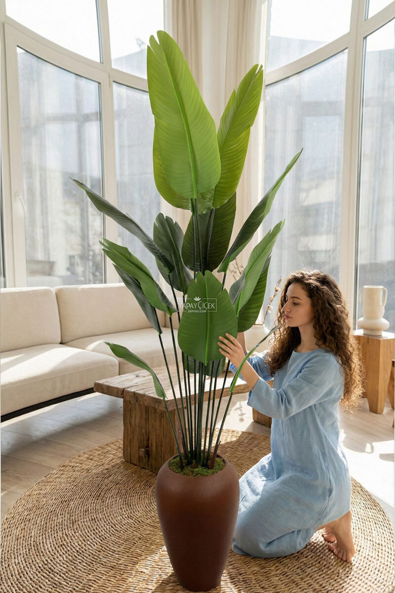 Damla saksıda sunulan 15 yapraklı yapay Starliçe ağacı, geniş ve gösterişli yaprak formuyla bulunduğu ortama tropikal ve modern bir hava katar. Gerçekçi dokulu yaprakları ve dengeli duruşu sayesinde ev, ofis, otel ve vitrin dekorasyonlarında şık bir tamamlayıcıdır.