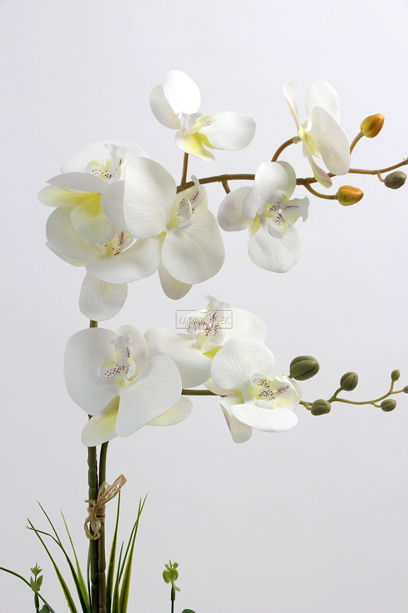 Dekoratif 2’li Nismo Yapay Islak Orkide Tanzimi, gerçek orkide görünümünü yansıtan ıslak dokulu yapısı ve zarif formu ile mekânlara modern ve şık bir atmosfer kazandırır. İki dallı orkide yapısı sayesinde dengeli ve estetik bir duruş sunar. Bakım gerektirmeyen yapay yapısı ile solma yapmaz, uzun süre ilk günkü canlılığını korur. Ev, ofis, otel, restoran ve vitrin dekorasyonlarında rahatlıkla tercih edilebilir.