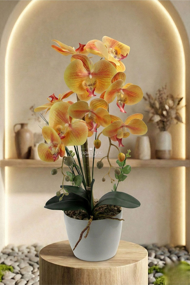 Dekoratif 2’li Nismo Yapay Islak Orkide Tanzimi, gerçek orkide görünümünü yansıtan ıslak dokulu yapısı ve zarif formu ile mekânlara modern ve şık bir atmosfer kazandırır. İki dallı orkide yapısı sayesinde dengeli ve estetik bir duruş sunar. Bakım gerektirmeyen yapay yapısı ile solma yapmaz, uzun süre ilk günkü canlılığını korur. Ev, ofis, otel, restoran ve vitrin dekorasyonlarında rahatlıkla tercih edilebilir.