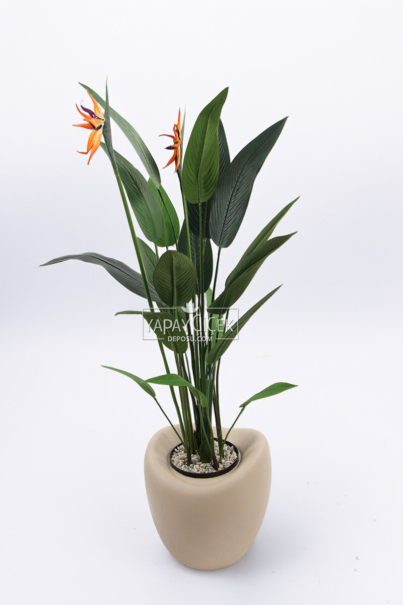 Yapay Ağaç Dinazor Yumurtası Saksıda Çiçekli King Starliçe Ağacı 160 cm Kapiçino