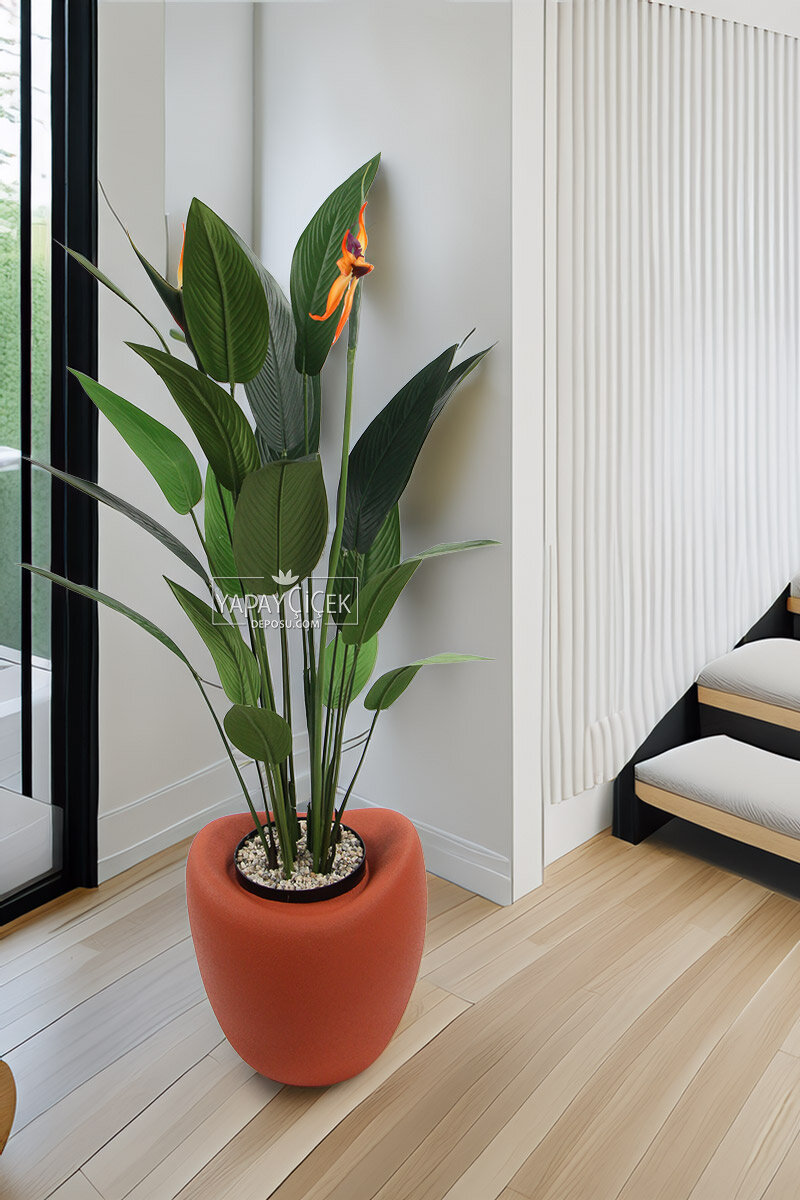 Yapay Ağaç Dinazor Yumurtası Saksıda Çiçekli King Starliçe Ağacı 160 cm Kiremit