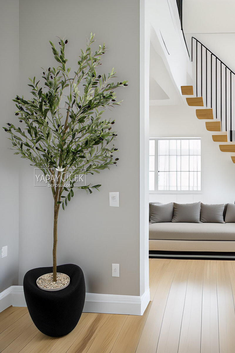 Yapay Ağaç Dinazor Yumurtası Saksıda Zeytin Ağacı 195 cm Siyah