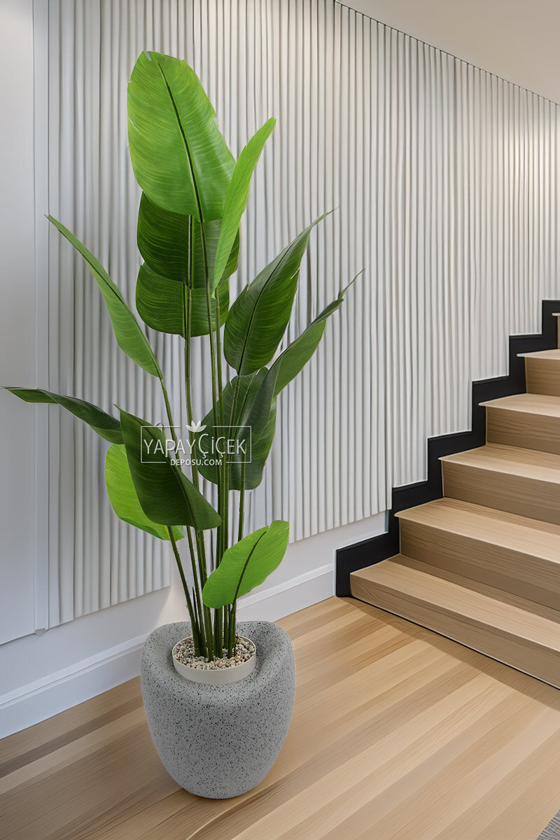 Yapay Ağaç  Dinazor Yumurtası Saksıda 12 Yapraklı Starliçe Ağacı 205 cm;