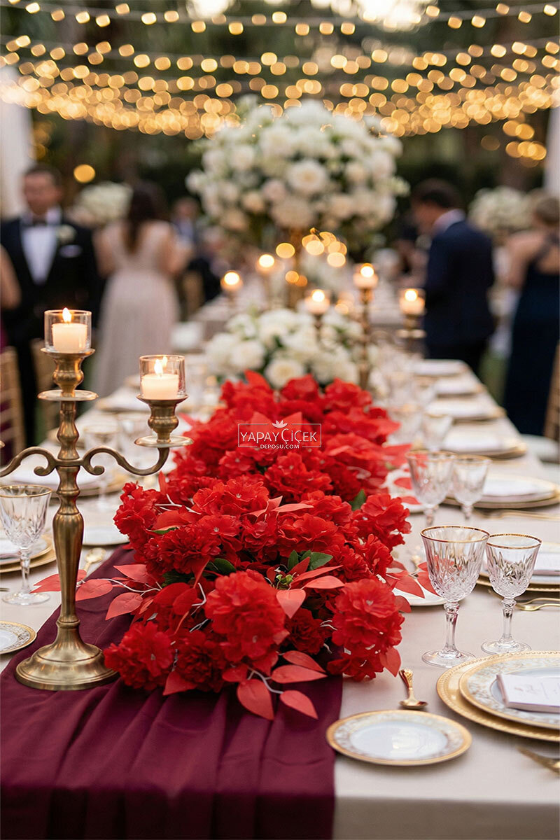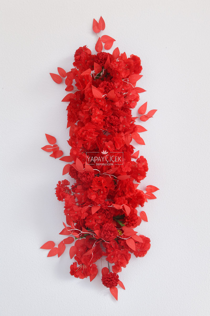 Düğün Nişan Söz Masa Çiçeği Hazır Tag Çiçeği Pastel Serisi 120 cm x 50 cm Kırmızı