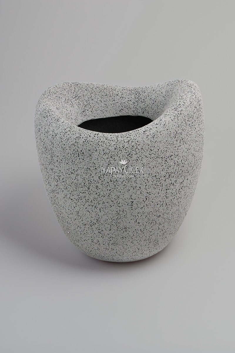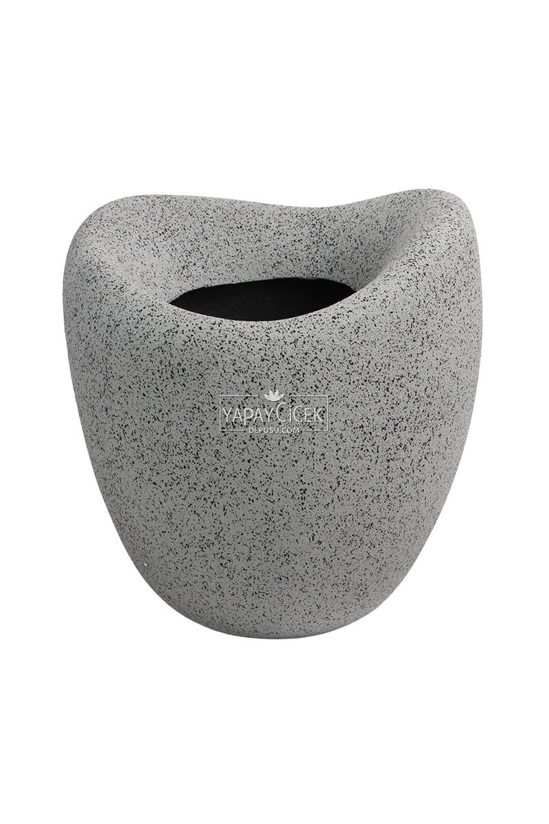 Fiber Stone Saksı Deve Kuşu Model Beton Dokulu 43 cm Gri-Siyah