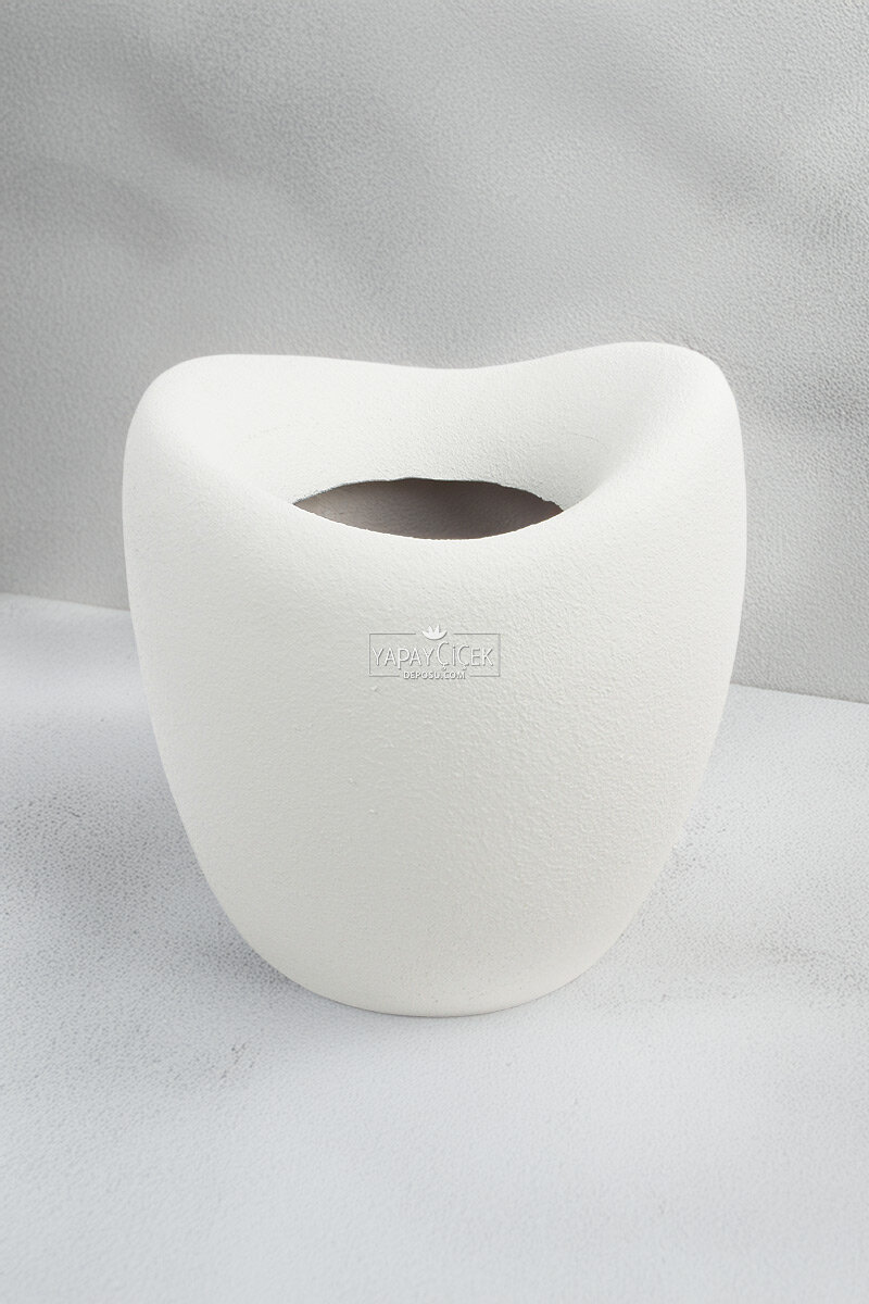 Fiber Stone Saksı Deve Kuşu Model 43 cm Kırık Beyaz