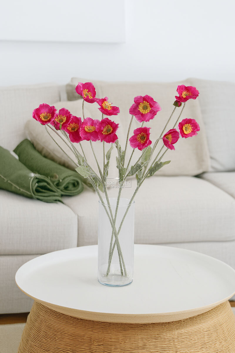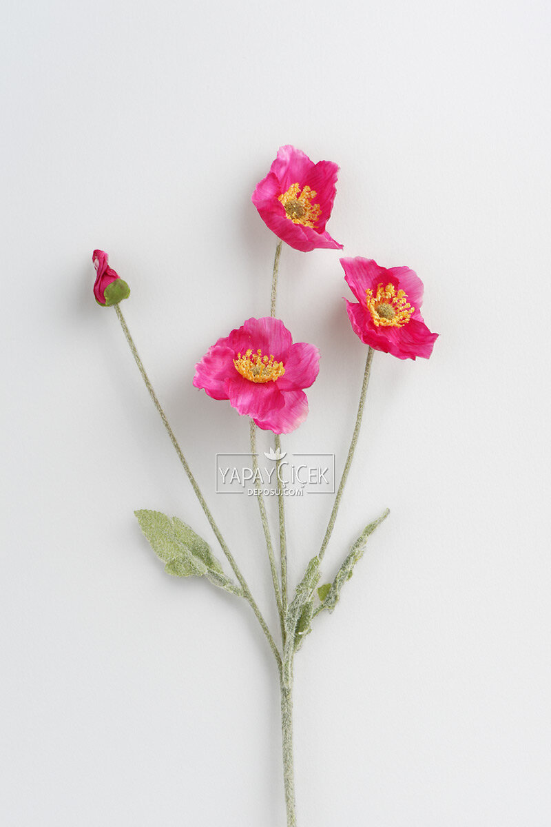 Yapay Çiçek 4lü Gelincik Dalı 60 cm Fusya