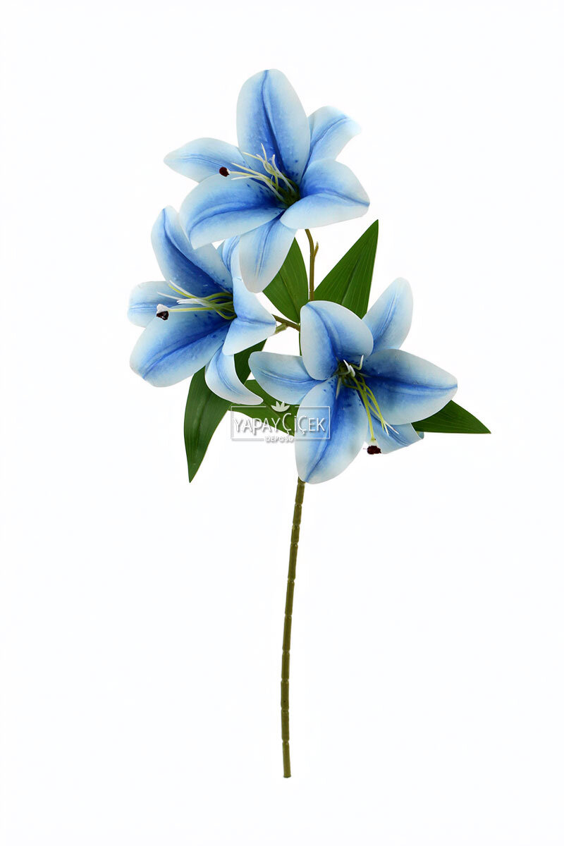Yapay Çiçek 3 Başlı Lüx Islak Kazablanka Dalı 60 cm Mavi