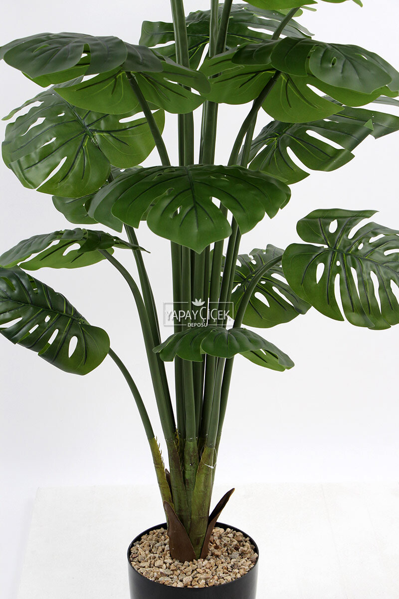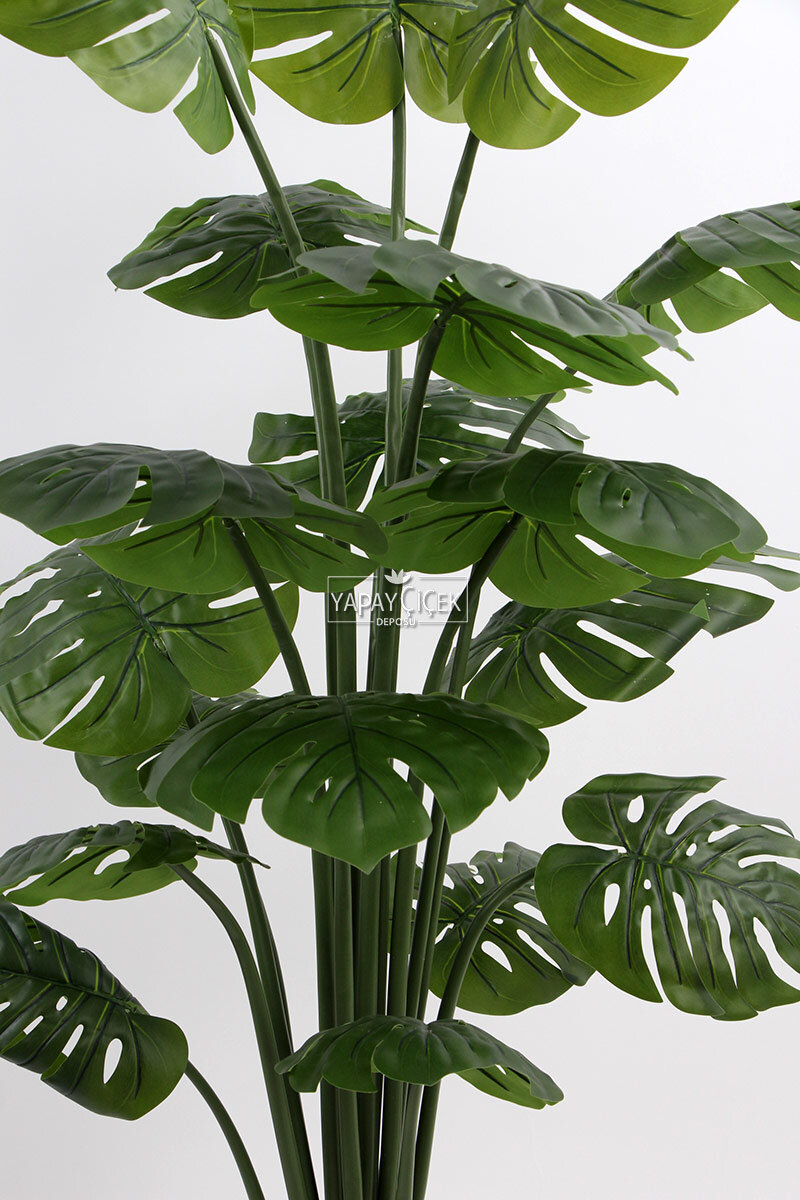 Yapay Ağaç gövdesi yeşil renk doğal görünümlü sert plastik malzemeden oluşmaktadır. Yapay Monstera ağacı üzerindeki yaprak dallar ıslak plastik malzemeden üretilmiş olup, dokunduğunuzda dahi gerçek olup olmadığını anlayamazsınız. Yapay Monstera ağacı kaliteli saksının içerisine sabitlenmiştir. Böylelikle yapay ağacın rüzgardan yada insanların dokunuşlarıyla yapay ağacın devrilip düşmesi engellenmiş olmuştur. Saksının üzeri doğal yeşil renk yosun ile kaplanmıştır, bakım gerektirmez.