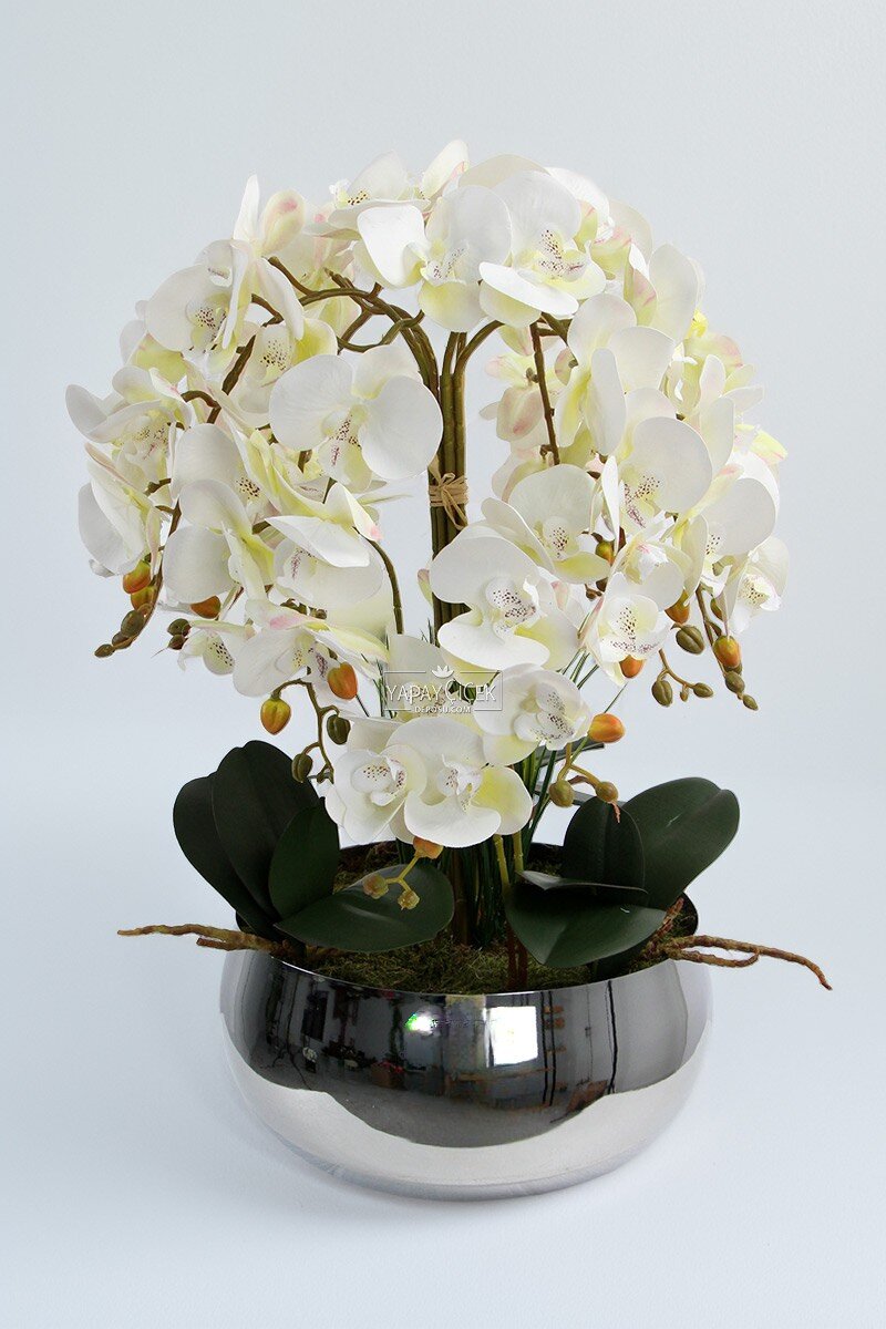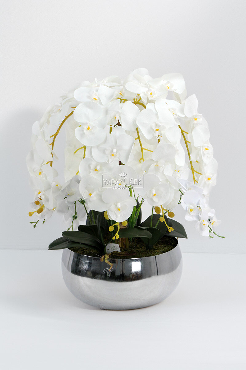 Çiçek ismi: Metal gümüş saksıda 10lu ıslak orkide