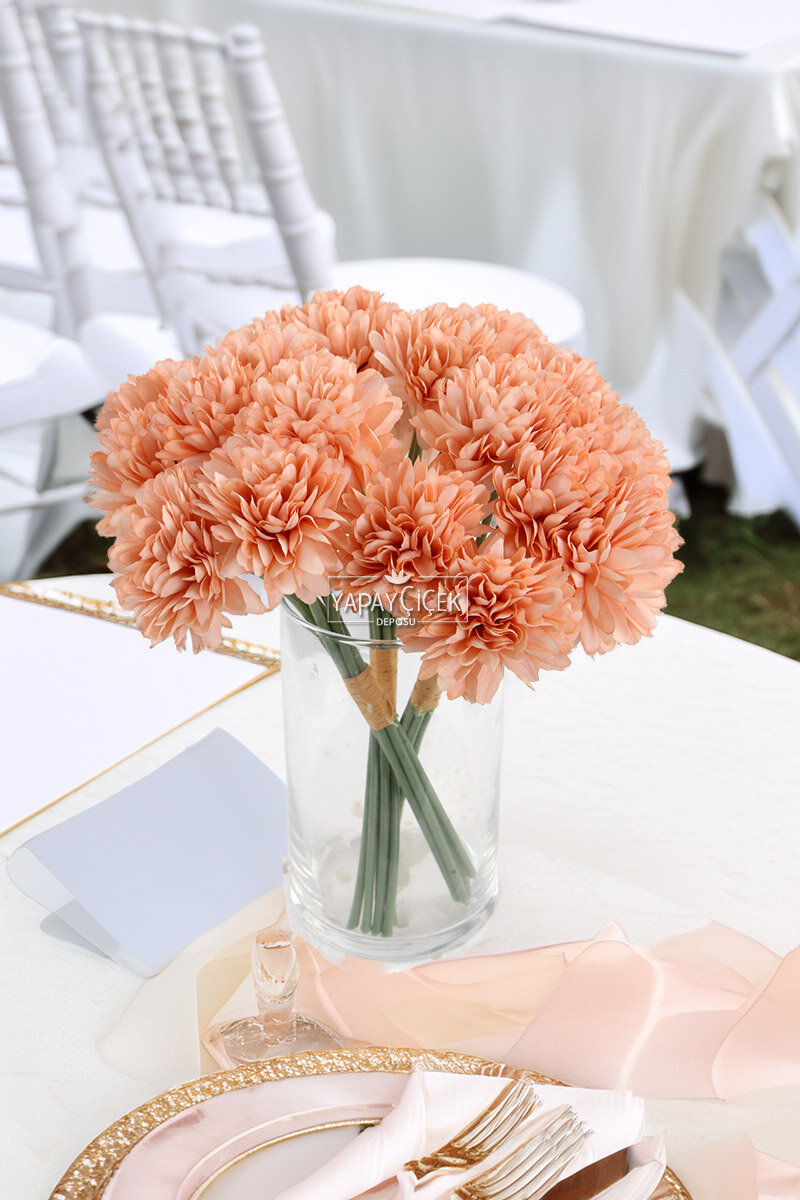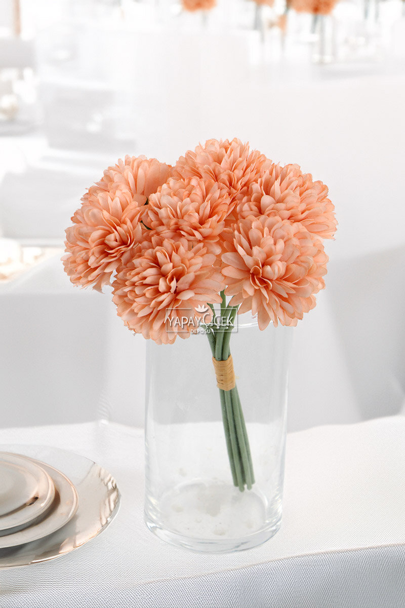 Yapay Çiçek Top Krizantem 7li Mini Kartopu Demeti 30 cm Somon