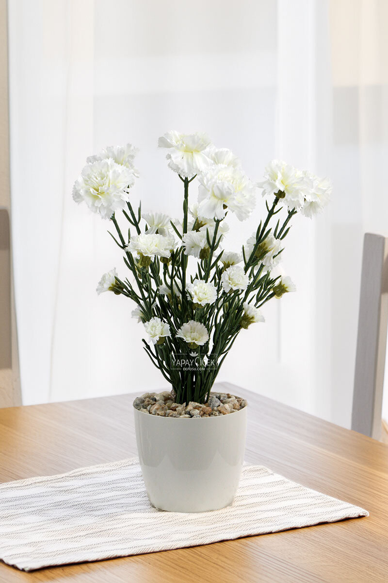 Yapay Karanfil Çiçeği Tanzimi Saksılı 37 cm Beyaz