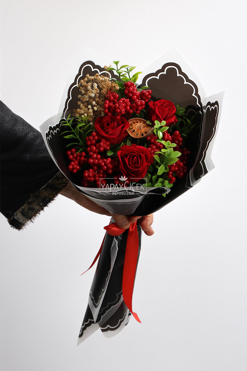 Yapay Yeni Yıl Kırmızı Düş Kokina Kokina Buketi 55 cm