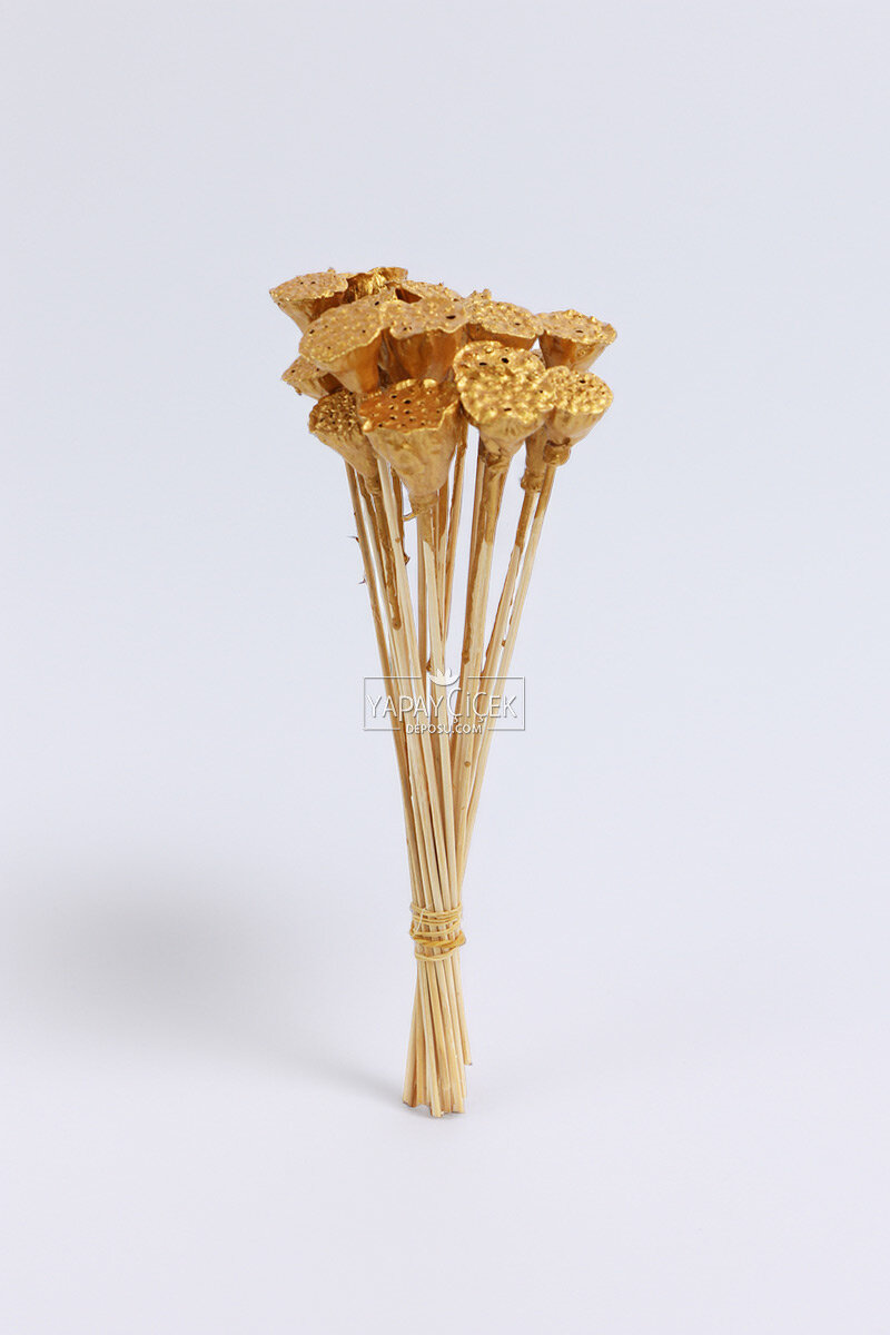Kurutulmuş Çiçek 20li Mini Lotus 28 cm Gold