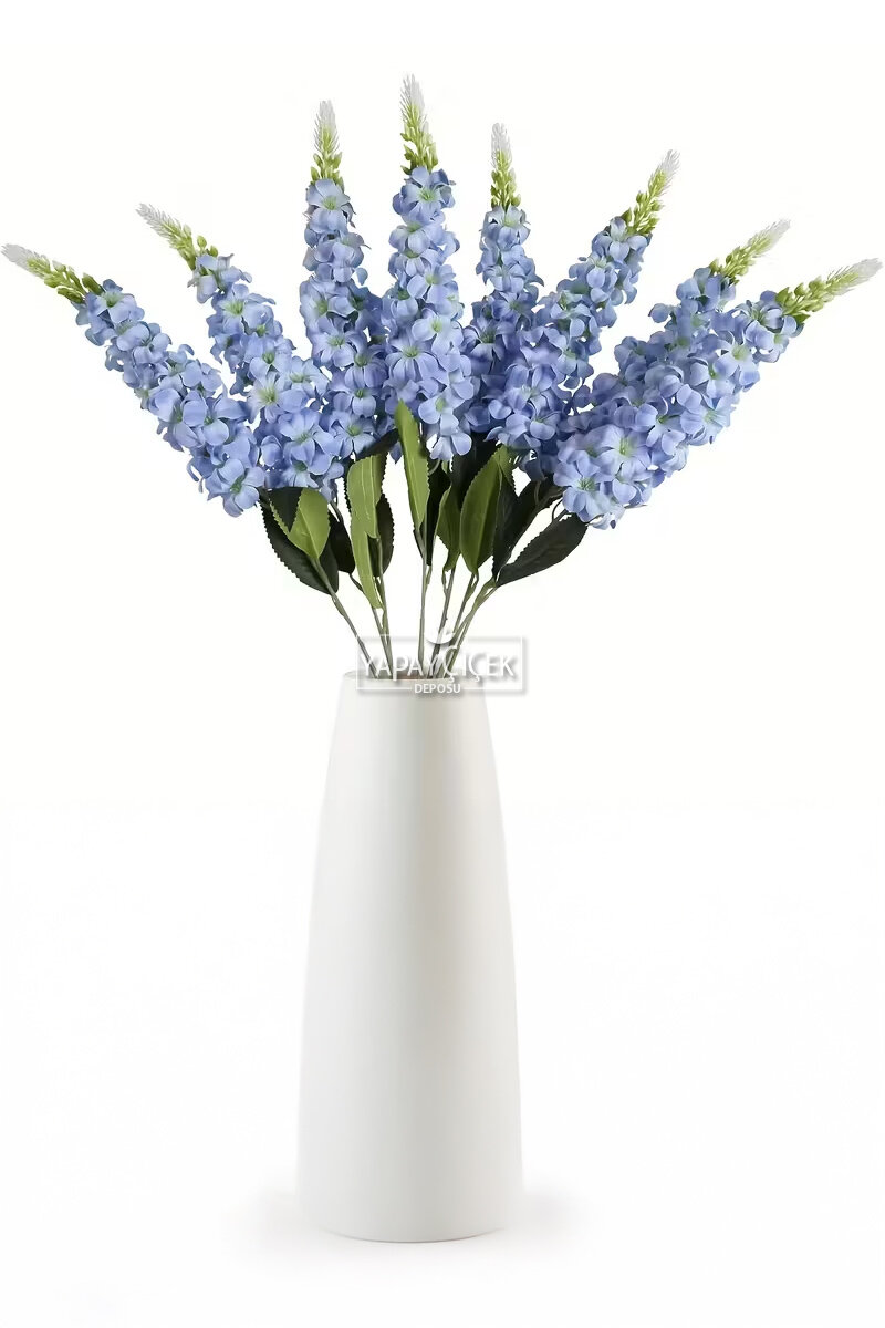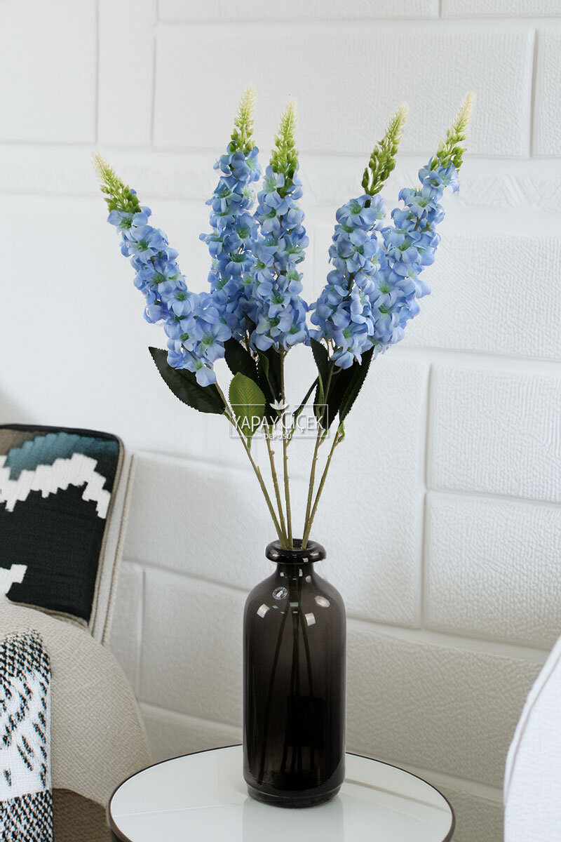 Genellikle uzun vazolar ile beraber tercih edilmelidir. Uzun dal delphinium çiçeğini boğumlarından kısaltabilir ve yüksekliğini istediğiniz gibi ayarlaya bilirsiniz. Ürün yapay olduğu için temizliği kolaydır ve çok uzun ömürlüdür.