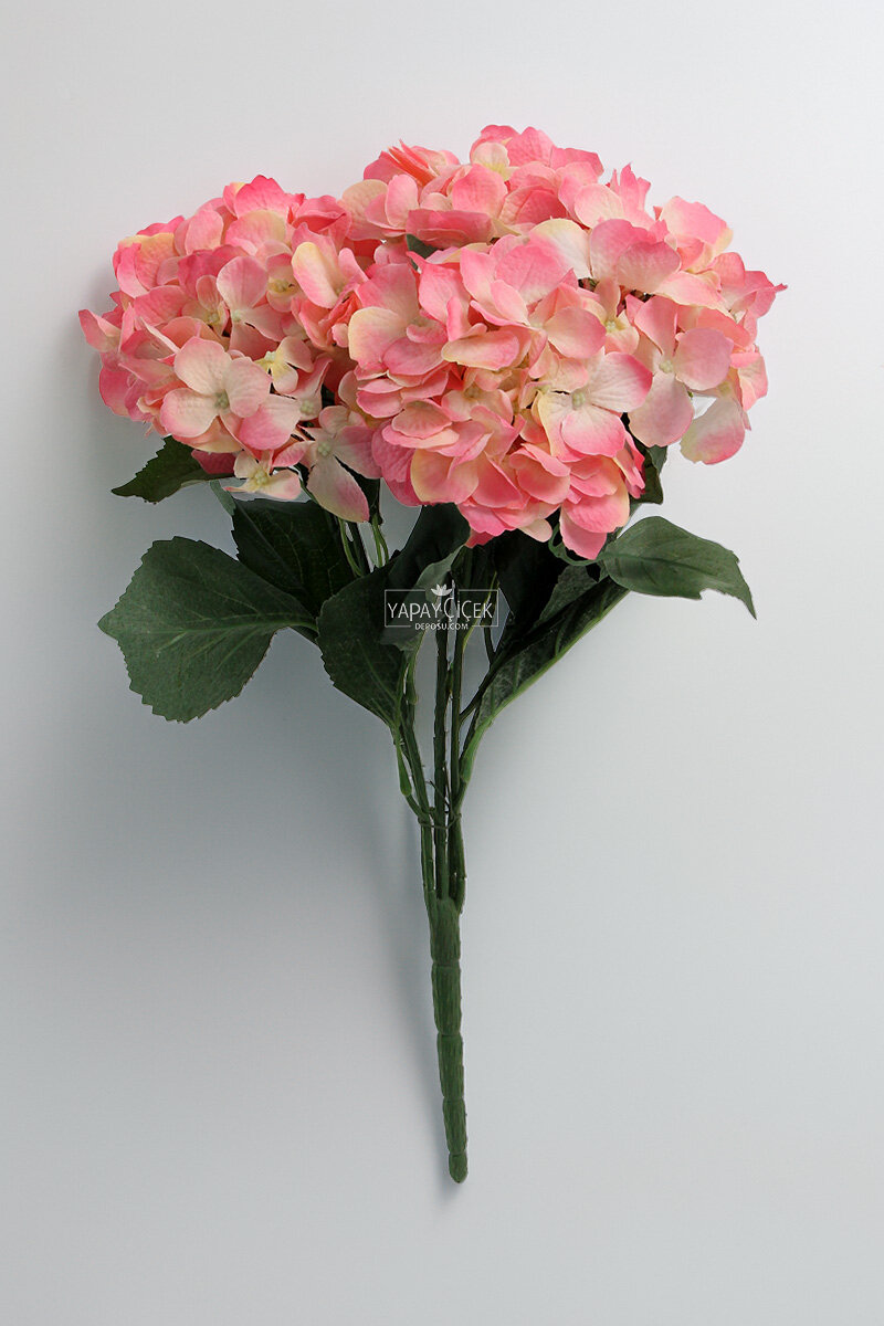 Yapay Çiçek Büyük 5 Dal Ortanca Demeti Pembe-Krem