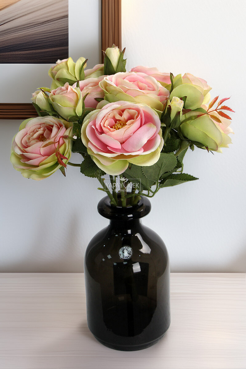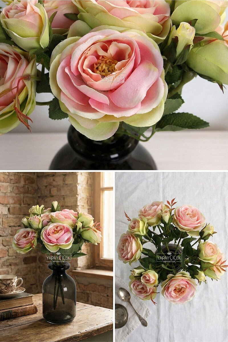Yapay Çiçek Tomurcuklu Lüx Gül Demeti, iri katmer güller, küçük güller ve tomurcuk detaylarının bir araya geldiği dolgun yapısıyla dekorasyon ve aranjman çalışmalarında premium bir görünüm sunar. Kalın ve kaliteli kumaş malzemeden üretilmiş olan bu demet, uzun yıllar boyunca formunu korur; bozulma ve dağılma yapmaz.