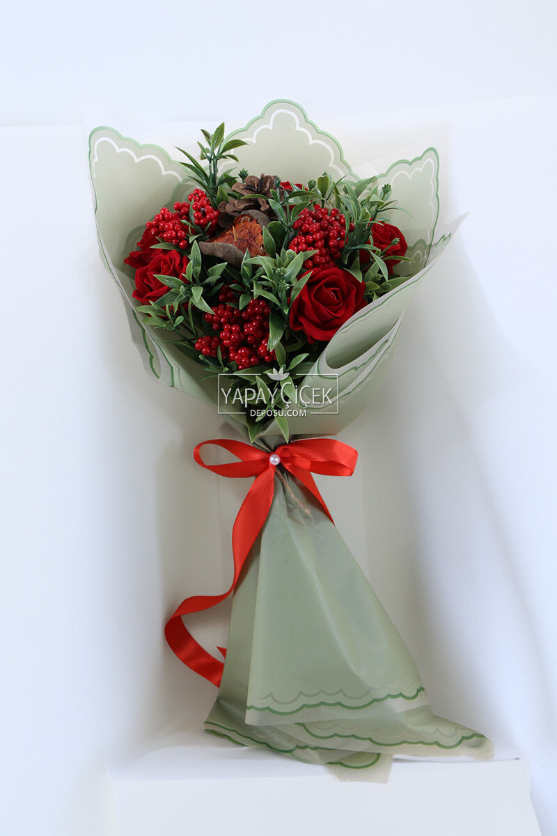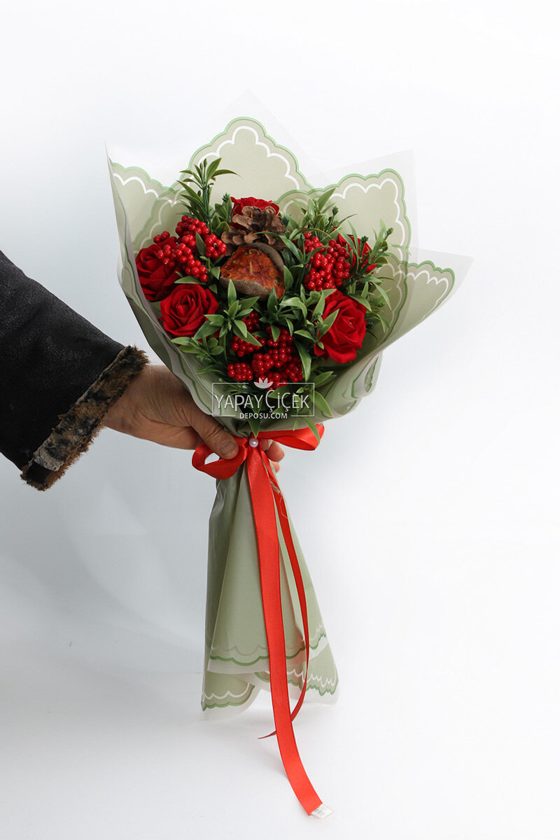 Yapay Yeni Yıl Red Harmony Kokina Buketi 60 cm