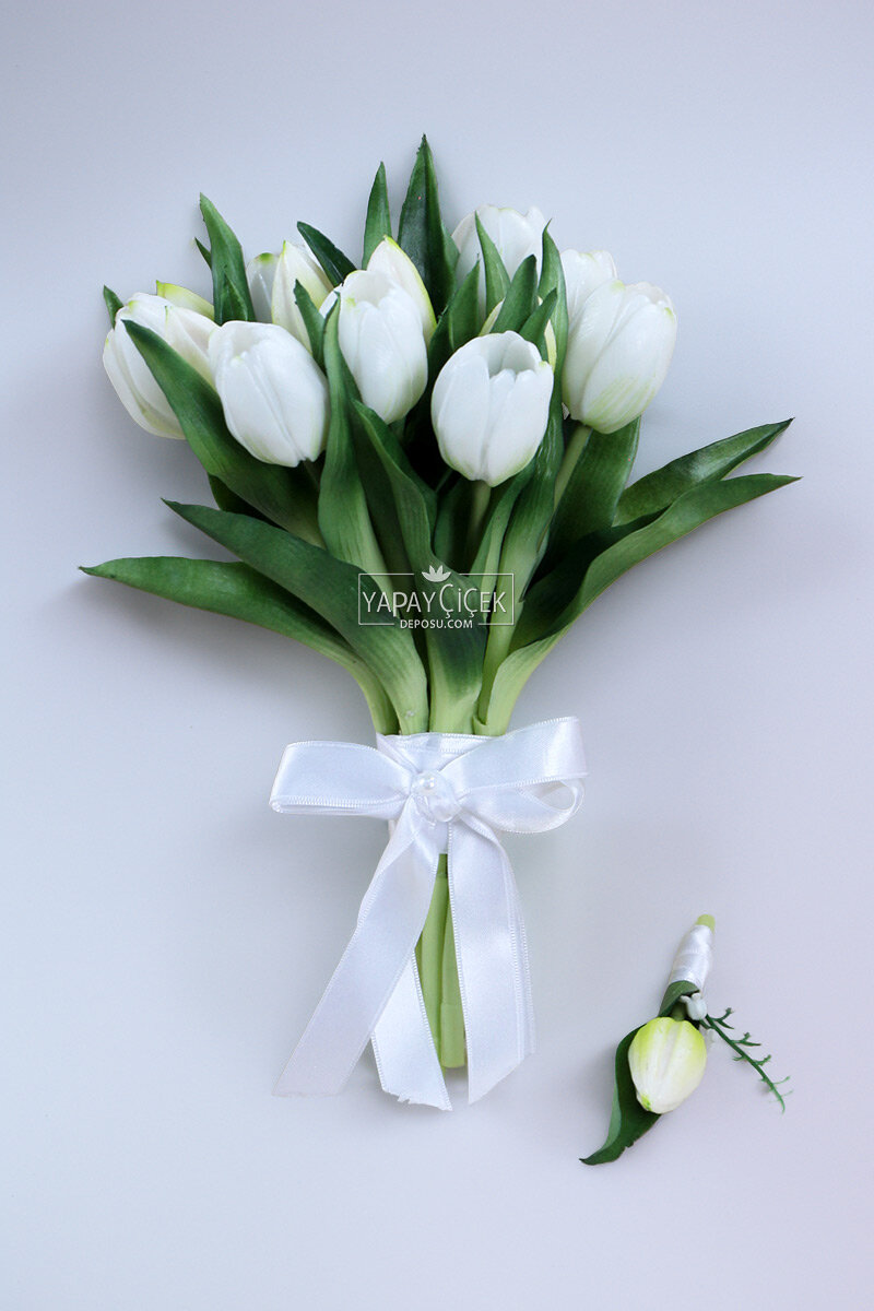 Saf Duruş Premium Lale Gelin Buketi 2li Set