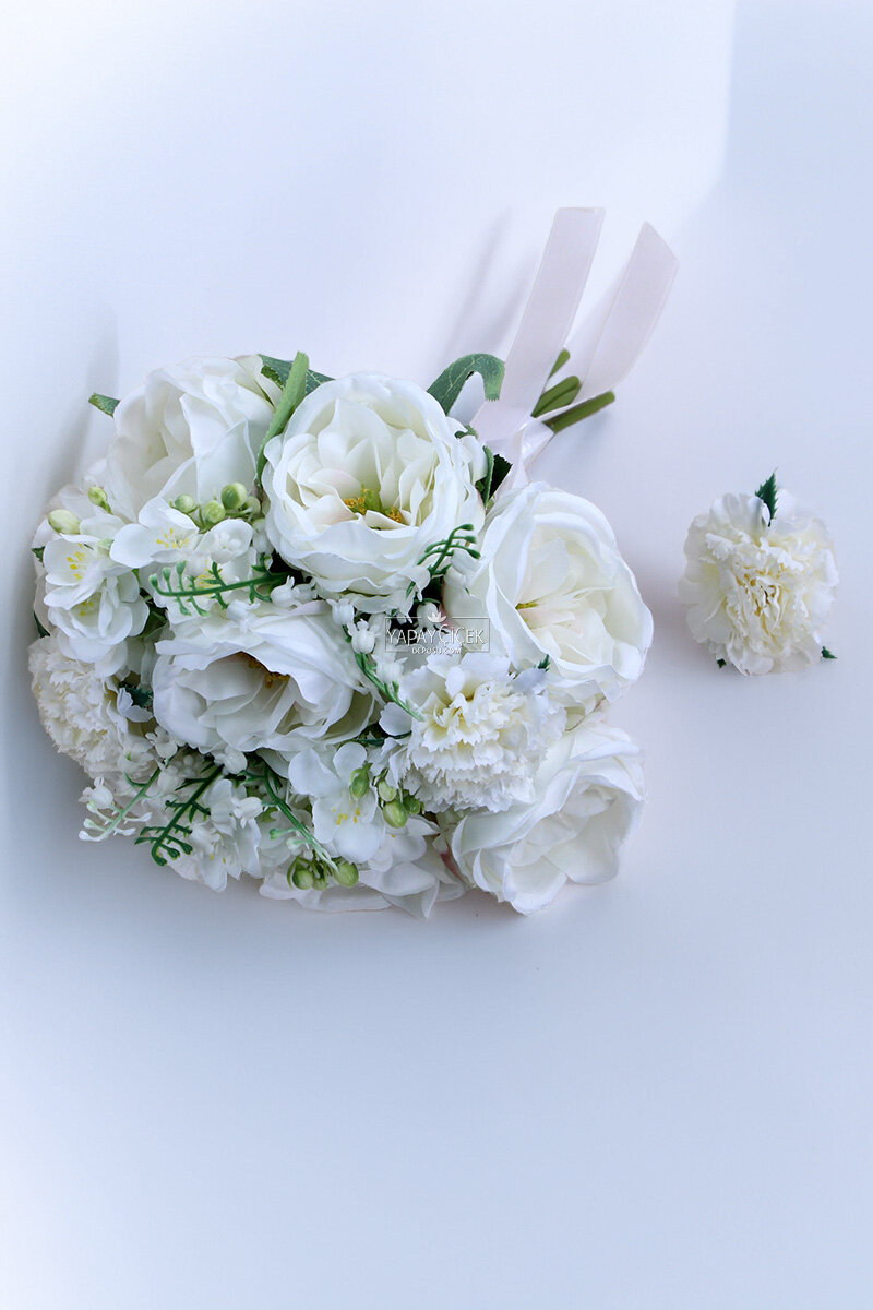 Set İçeriği: Gelin buketi ve damat yaka çiçeği