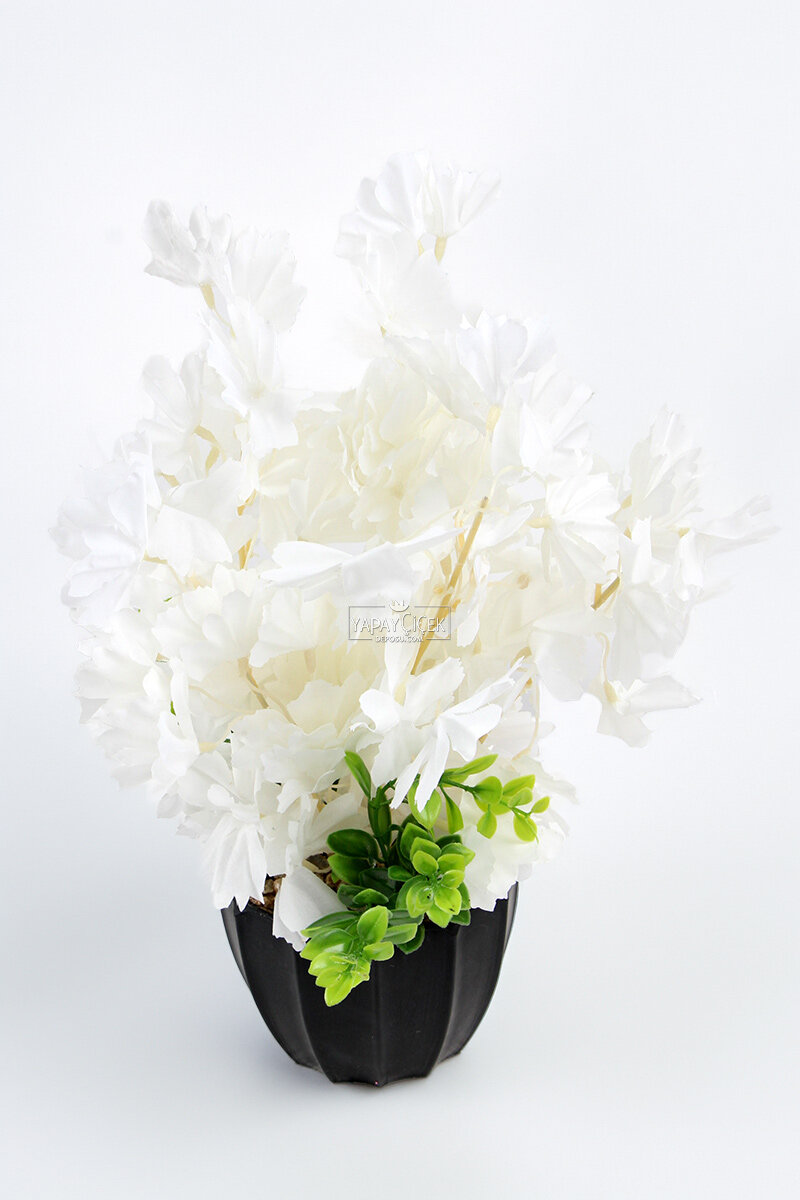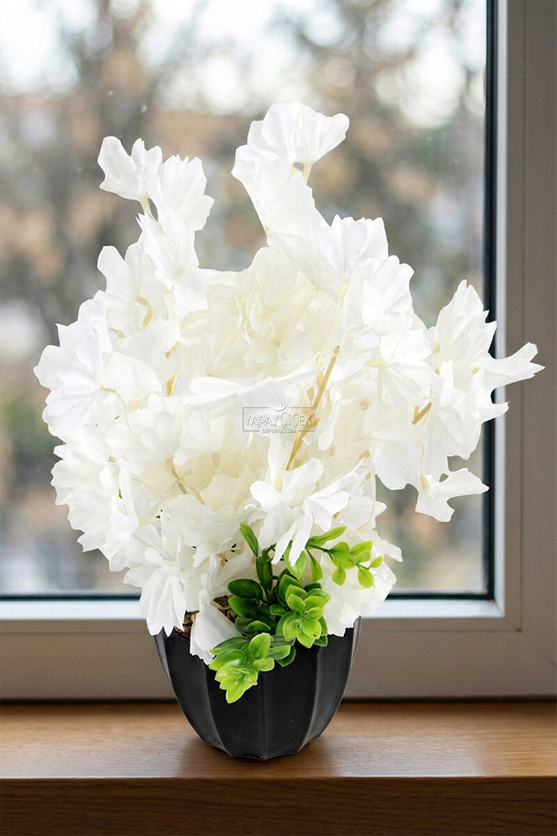 Kompakt boyutu sayesinde masa, sehpa, konsol, ofis masası ve raf dekorasyonlarında rahatlıkla kullanılabilir. Dolgun çiçek yapısı ile dekoratif bir bütünlük sağlar. Bakım gerektirmez, sulama istemez ve uzun süre formunu korur.