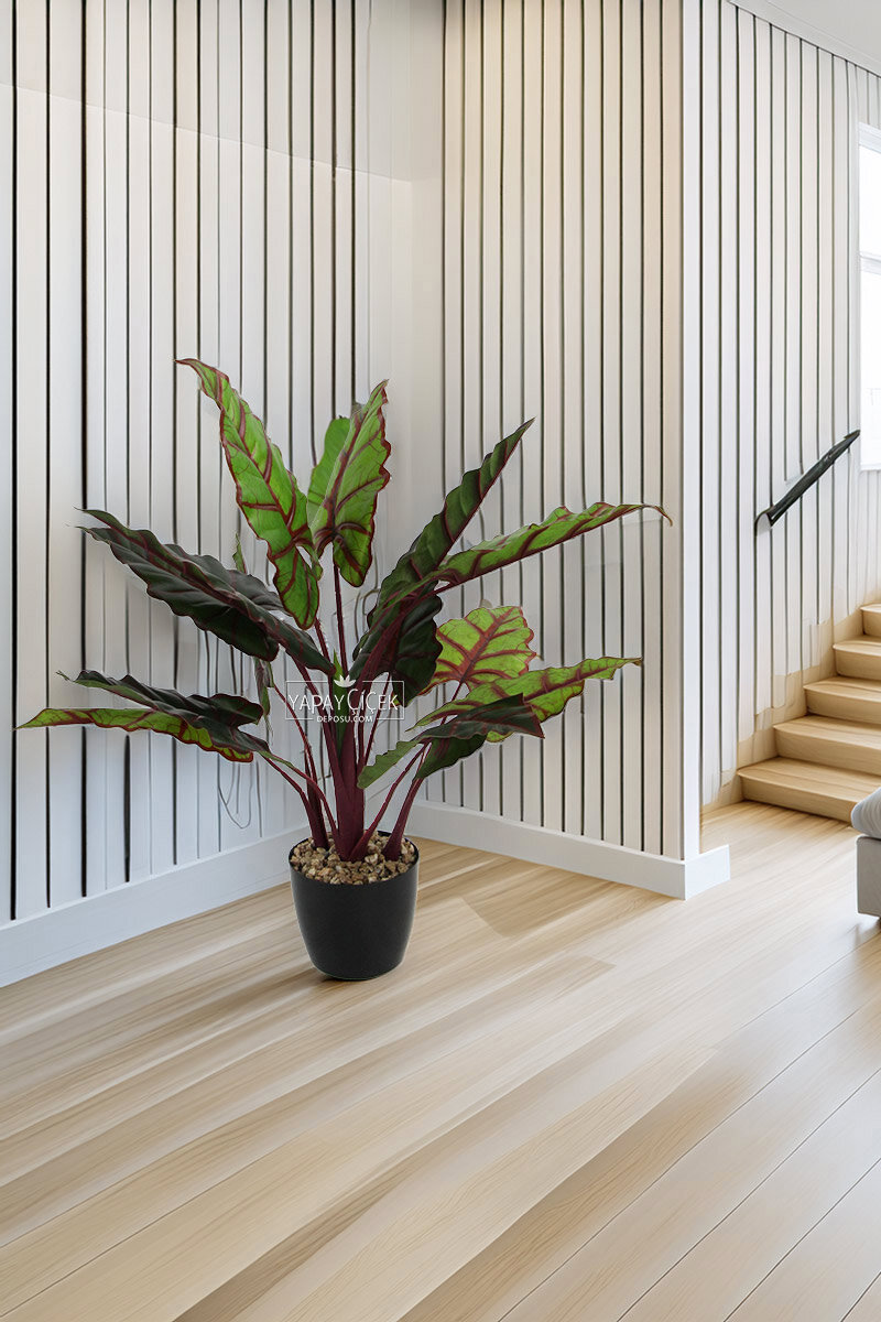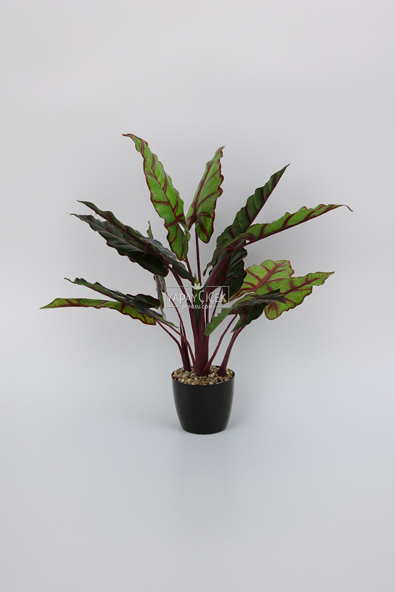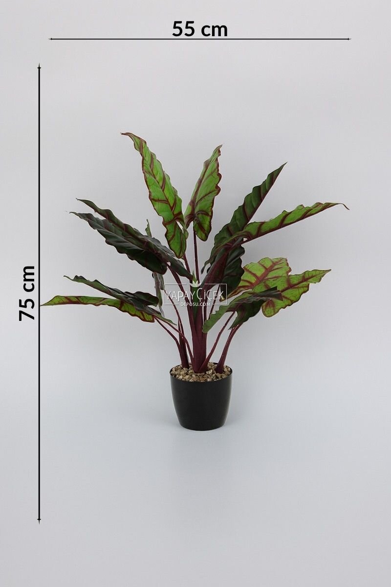 Siyah Saksılı Yapay Ağaç Küçük Fil Kulağı 75 cm Yeşil-Kızıl