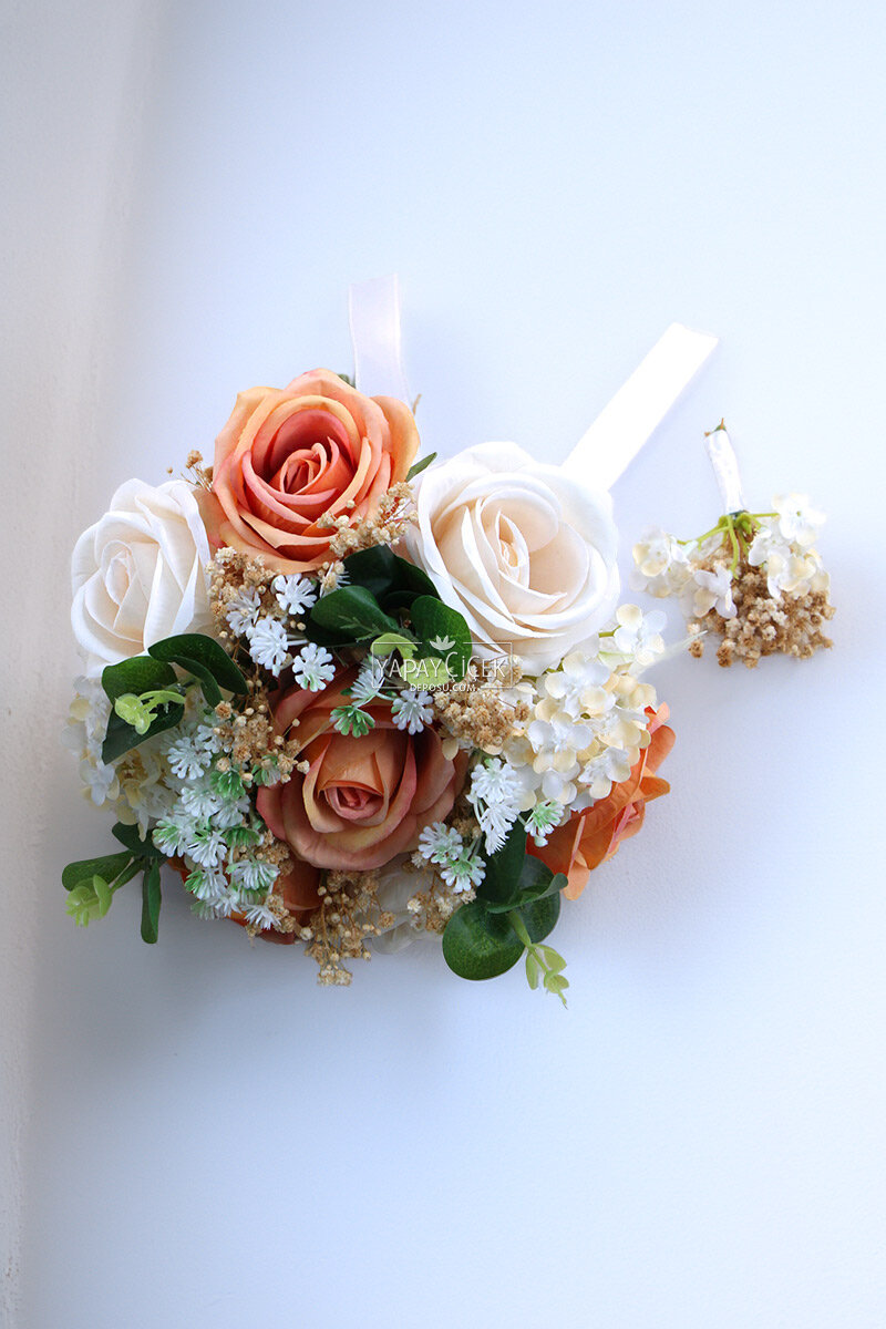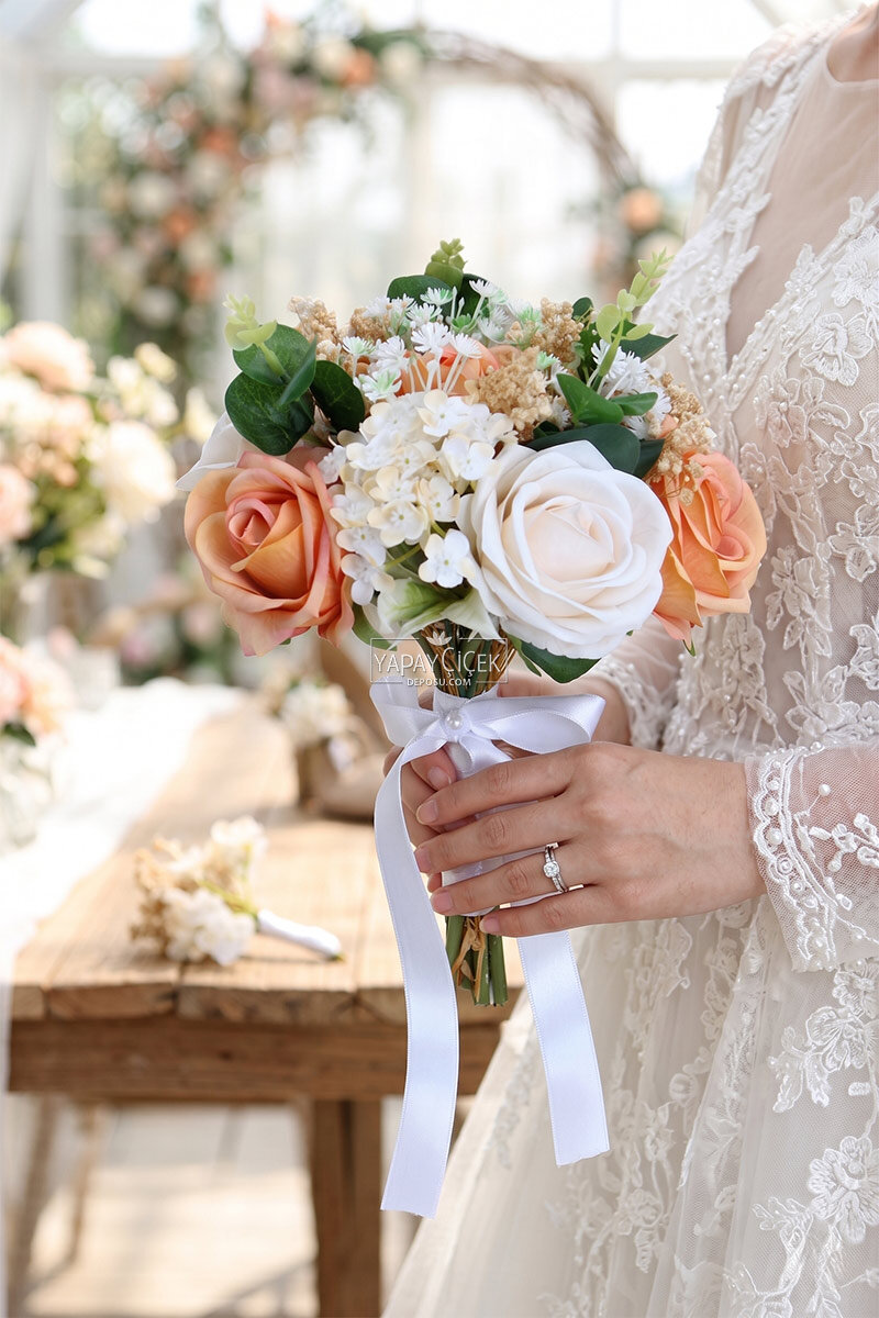Kompakt ve dengeli yapısı sayesinde elde şık bir duruş sergiler. Doğal görünümlü çiçek detayları ile estetik bir görünüm sunar. Yapay olması sayesinde solma veya dökülme yapmaz, uzun süre formunu korur ve özel gününüzden kalıcı bir hatıra olarak saklanabilir.