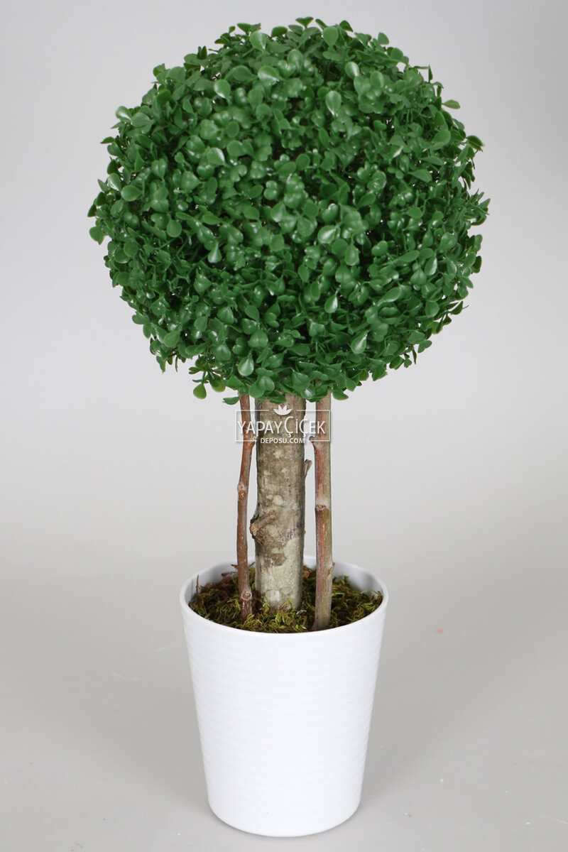 Yapay Ağaç'ın gövdesi gerçek ağaçtan oluşmaktadır. Yapay top şimşir üzerindeki şimşir yaprakları plastik malzemeden üretilmiştir. Yapay şimşir ağacı dekoratif mika saksı üzerine konumlandırılmıştır. Saksı üzeri doğal yosun ile kaplanmıştır. Resimde gördüğünüz gibi size gönderilecektir.
