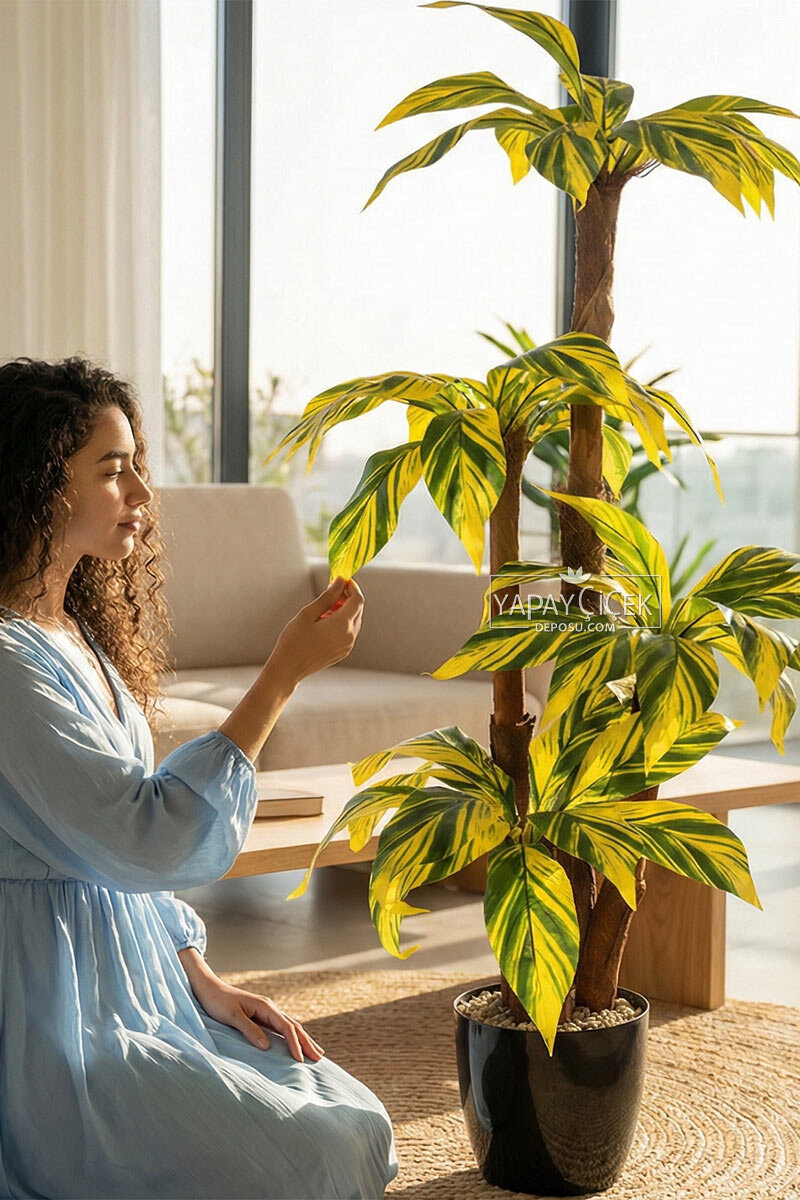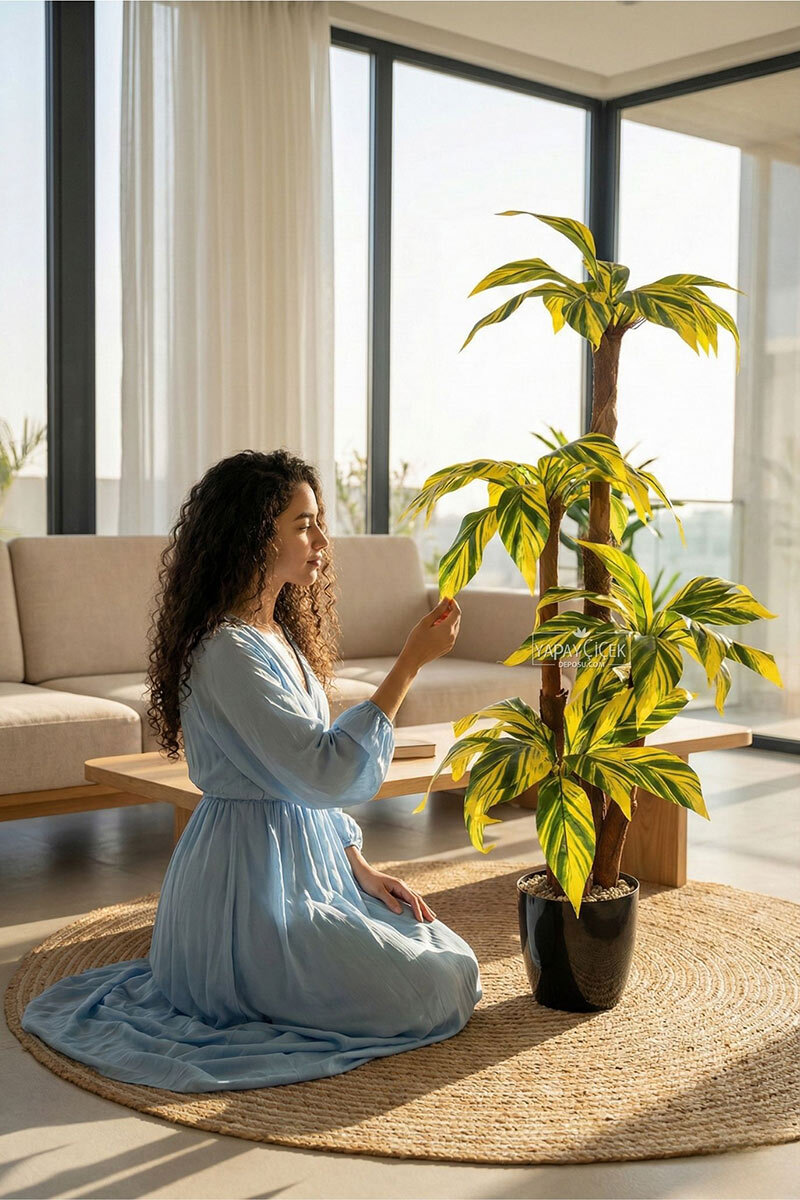 Bodur Yapay Ağaç Cordyline Model 2, kompakt yapısı ve modern formu ile iç mekân dekorasyonlarında şık ve dengeli bir görünüm sunar. Geniş yaprak yapısı sayesinde bulunduğu alana dolgunluk katar. Bakım gerektirmeyen yapay yapısı ile solma, dökülme veya sulama ihtiyacı olmadan uzun süre ilk günkü formunu korur. Ev, ofis, mağaza, kafe ve otel dekorasyonlarında rahatlıkla tercih edilebilir.
