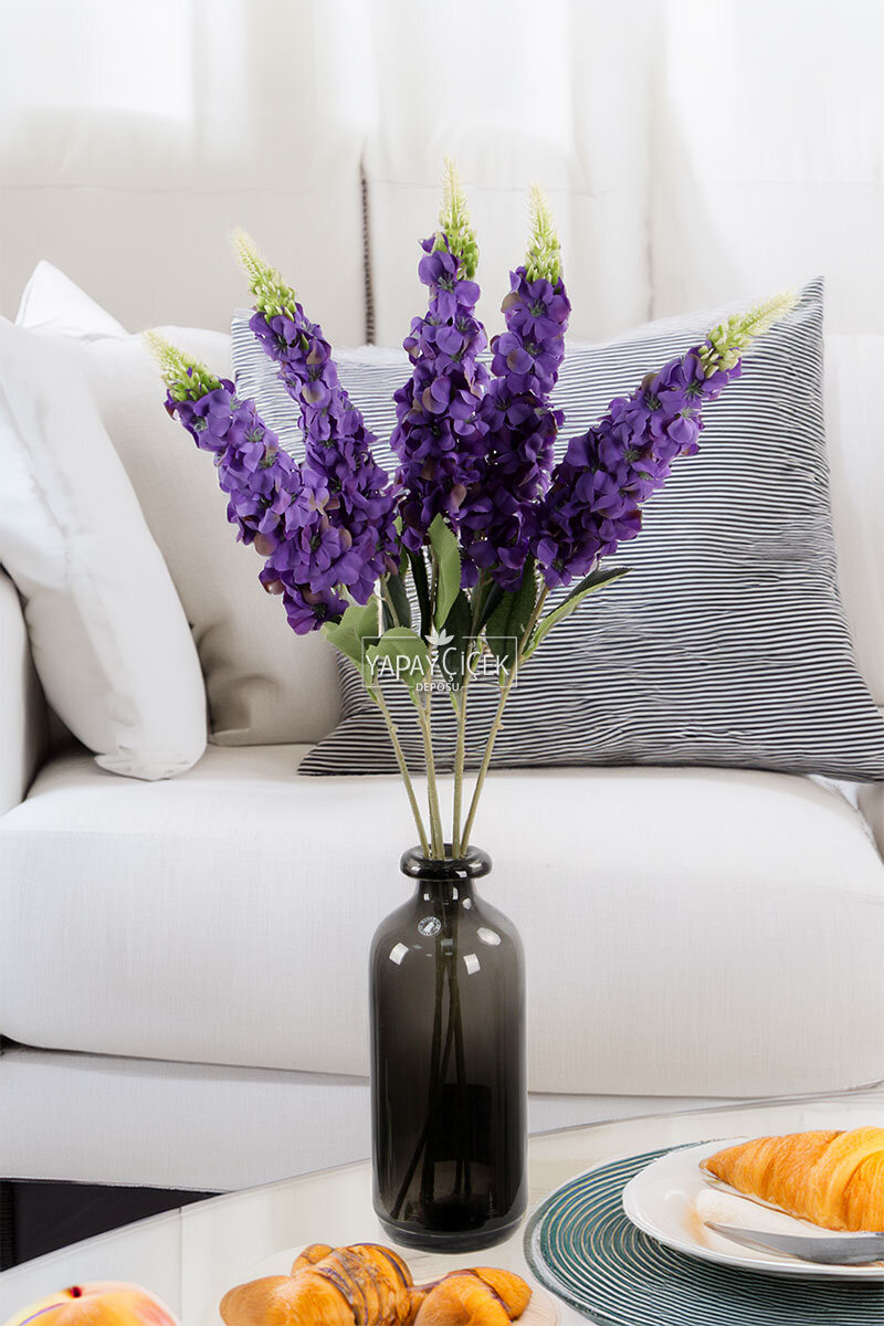 Genellikle uzun vazolar ile beraber tercih edilmelidir. Uzun dal delphinium çiçeğini boğumlarından kısaltabilir ve yüksekliğini istediğiniz gibi ayarlaya bilirsiniz. Ürün yapay olduğu için temizliği kolaydır ve çok uzun ömürlüdür.