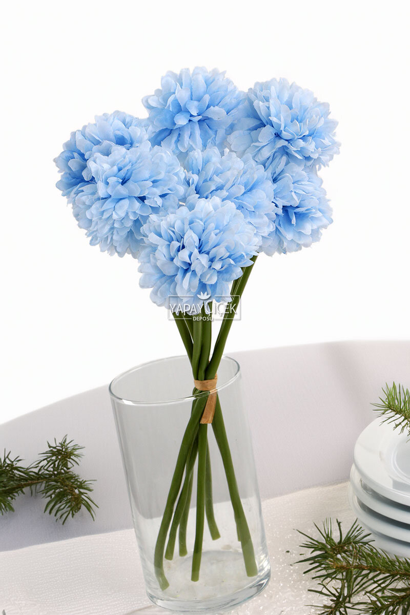 Yapay Çiçek Top Krizantem 7li Mini Kartopu Demeti 30 cm Açık Mavi