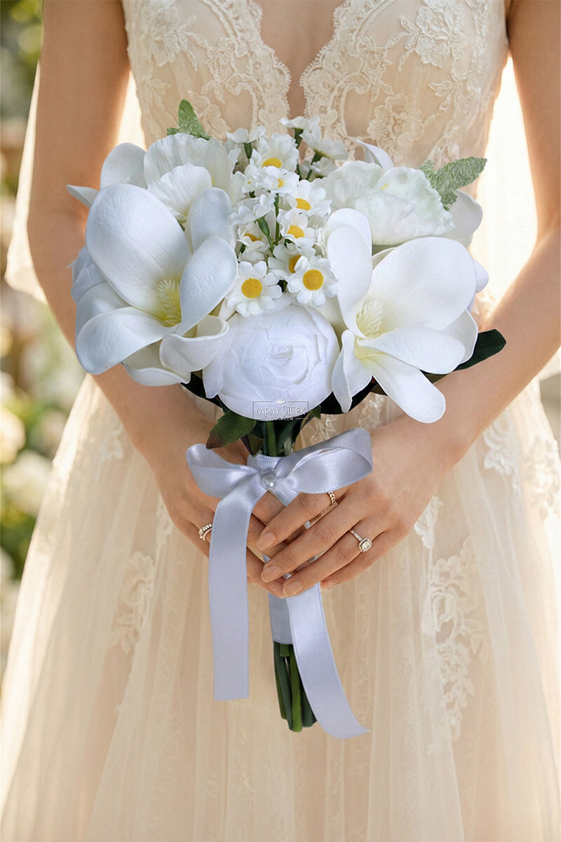 Klasik ve zarif tasarımıyla öne çıkan Victoria Gelin Buketi 2’li Set, özel günlerinize şıklık ve romantizm katmak için tasarlanmıştır. Dengeli çiçek yerleşimi ve dolgun formu sayesinde hem sade hem de gösterişli gelinlik modelleriyle uyum sağlar.
