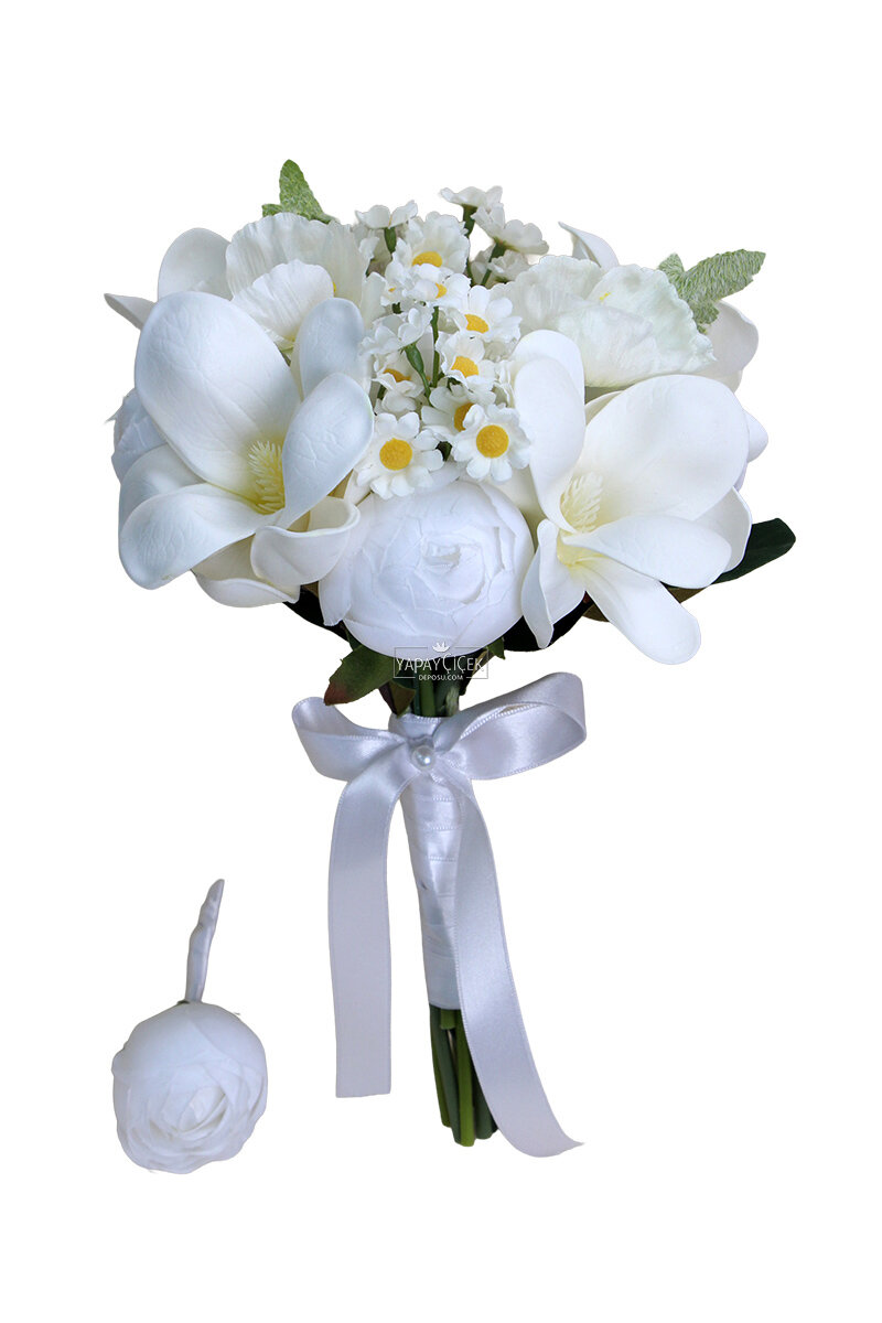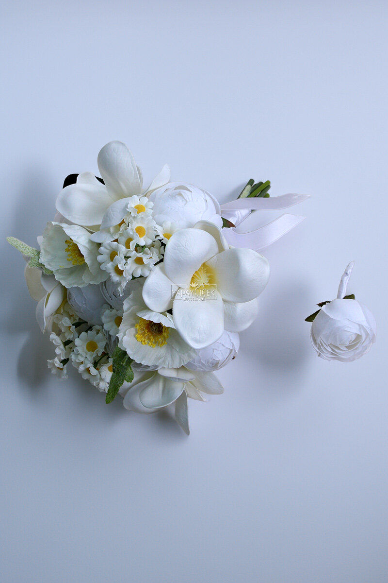 Set İçeriği: Gelin buketi ve damat yaka çiçeği