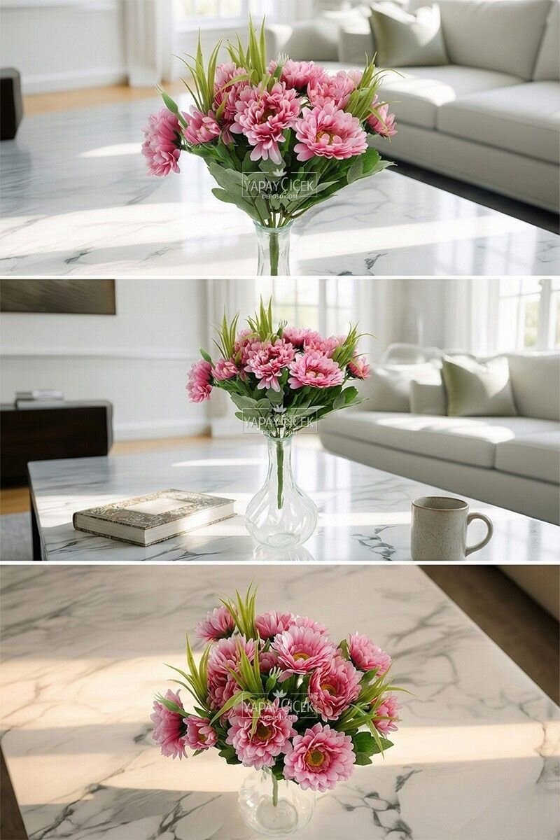 Yapay Çiçek 10’lu Gerbera Demeti, canlı ve enerjik görünümüyle dekorasyonlara renkli bir dokunuş katar. Dolgun yapısı sayesinde tek başına vazo içerisinde kullanılabileceği gibi farklı yapay çiçeklerle kombinlenerek daha zengin aranjmanlar oluşturulabilir. Bakım gerektirmeyen yapay yapısı ile solma yapmaz, uzun süre ilk günkü canlılığını korur. Ev, ofis, vitrin ve organizasyon dekorasyonları için ideal bir tercihtir.