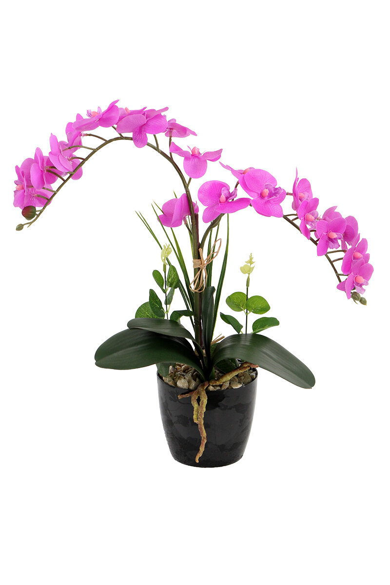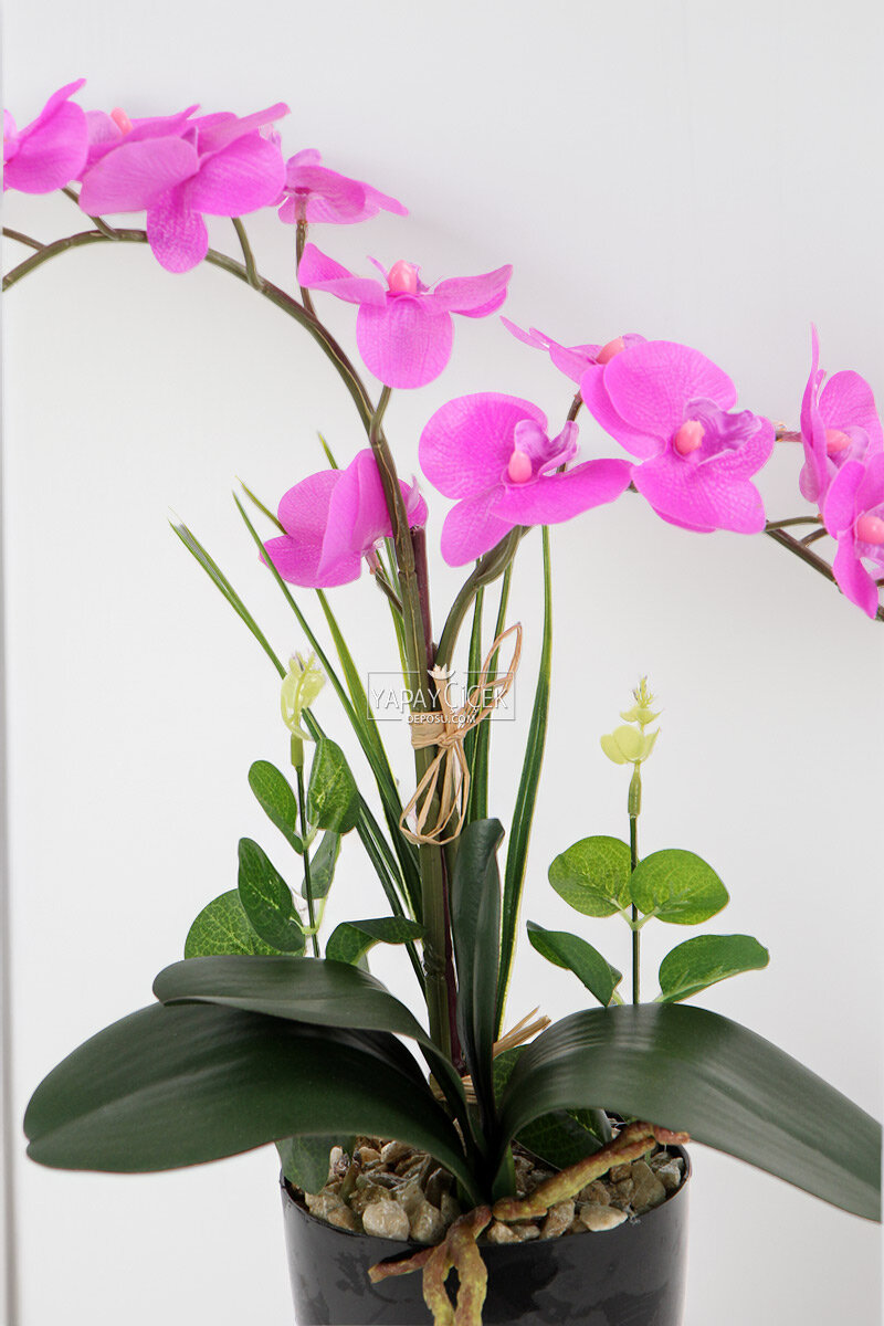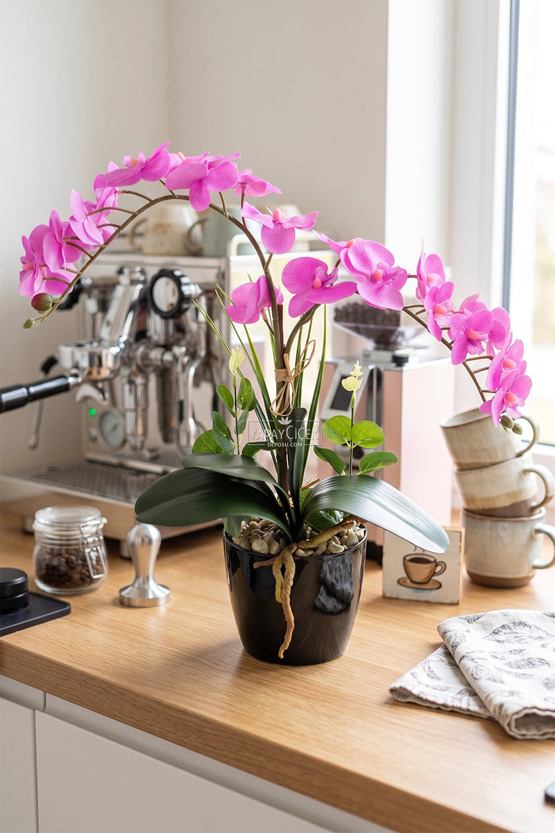 Canlı ve enerjik görünümüyle tasarlanan 2’li orkide tanzimi, bulunduğu ortama ferah ve zarif bir atmosfer kazandırır. Islak baskı dokusu sayesinde çiçekler gerçekçi bir görünüm sunar ve doğal bir his oluşturur.