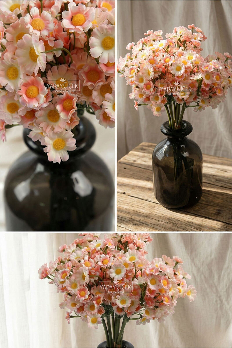 Yapay 100 Çiçekli Vadi Papatyası Demeti, sade ve zarif çiçek formu ile dekorasyonlara doğal ve ferah bir görünüm kazandırır. İnce dallı yapısı sayesinde vazo içerisinde şık bir duruş sergiler; farklı yapay çiçeklerle kombinlenerek estetik aranjmanlar oluşturmak için de uygundur. Bakım gerektirmeyen yapay yapısı ile solma yapmaz, uzun süre ilk günkü formunu korur. Ev, ofis, vitrin ve organizasyon dekorasyonlarında rahatlıkla tercih edilebilir.