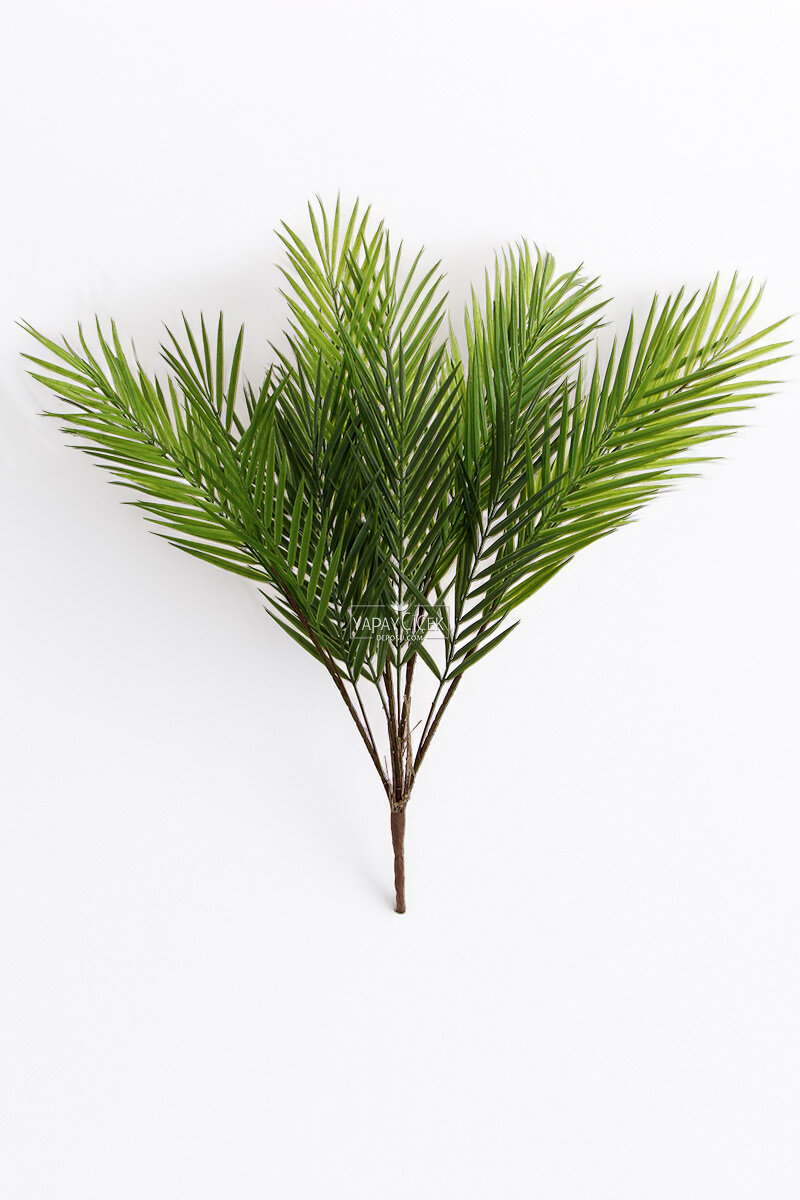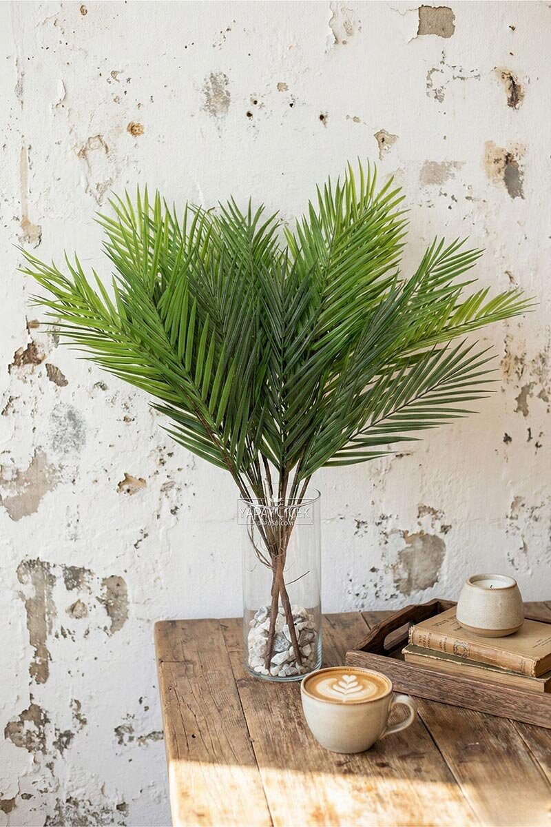 Yapay Bitki 4 Dallı Fenix Sıkas Demeti, tropikal ve güçlü yaprak formu ile bulunduğu ortama doğal ve ferah bir atmosfer kazandırır. Geniş ve dolgun yaprak yapısı sayesinde tek başına kullanılabildiği gibi büyük saksı ve aranjmanlarda da hacimli bir görünüm oluşturur.