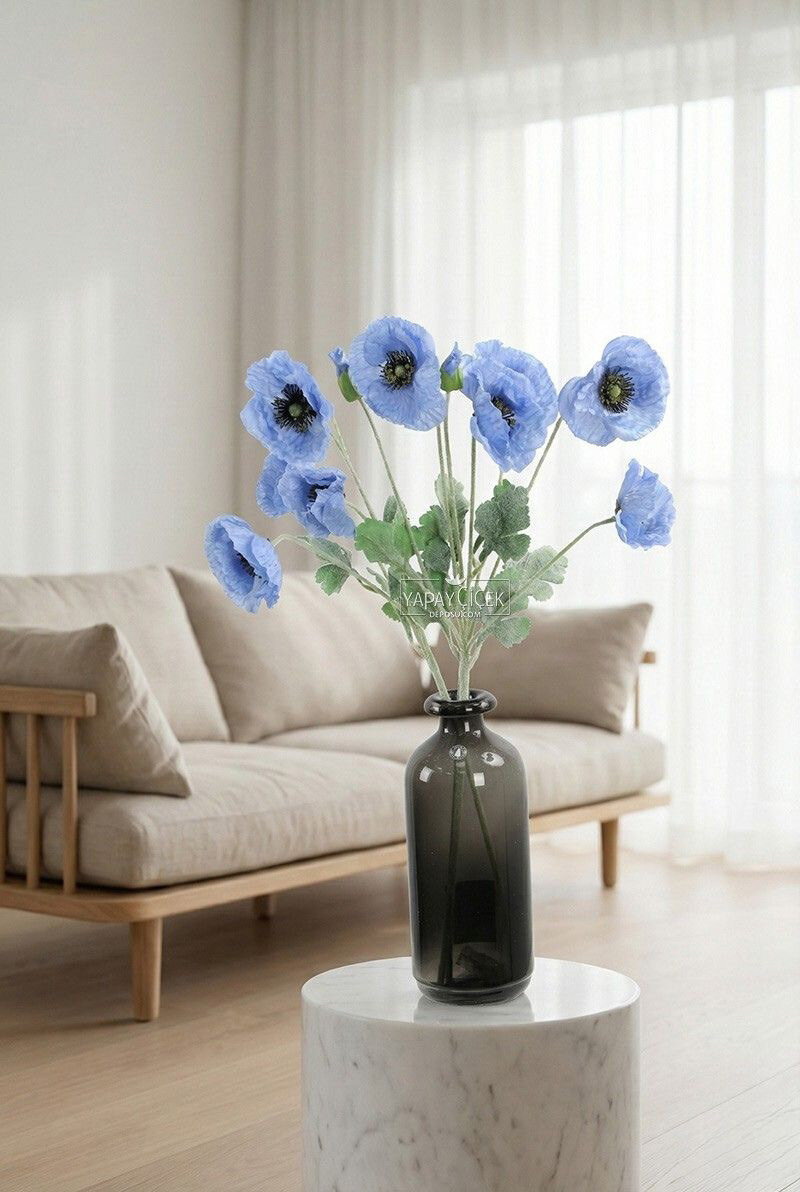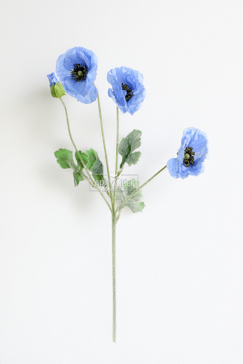 Yapay Çiçek 4lü Prenses Çiçeği Dalı 60 cm Mavi