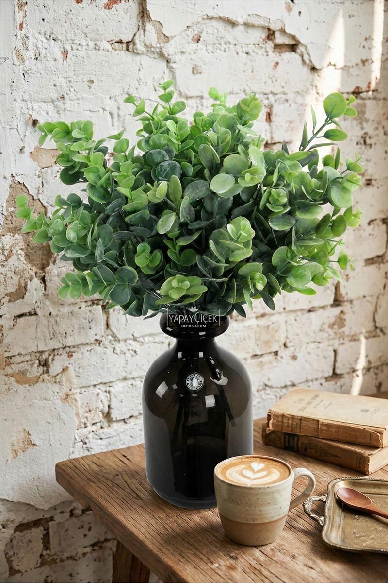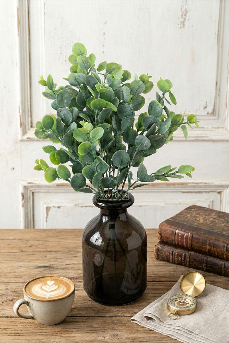 Yapay Yeşillik 5 Dallı Güz Okaliptusu, açık yeşil tonları ve doğal yaprak formu ile dekorasyonlara ferah ve modern bir dokunuş kazandırır. Dengeli ve dolgun dal yapısı sayesinde tek başına vazoda kullanılabileceği gibi çiçek aranjmanlarında tamamlayıcı yeşillik olarak da tercih edilebilir.