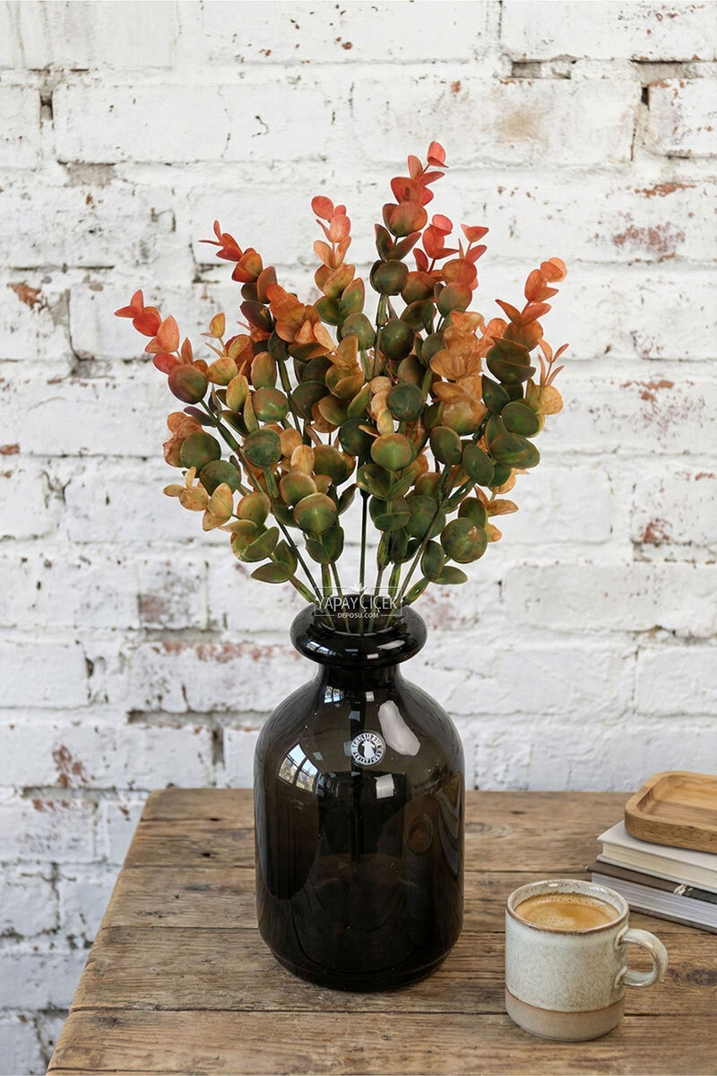 Yapay Yeşillik 5 Dallı Güz Okaliptusu, kiremit tonlarının sıcak ve doğal görünümü ile dekorasyonlara sonbahar esintisi kazandırır. Dengeli ve dolgun dal yapısı sayesinde tek başına vazoda kullanılabileceği gibi çiçek aranjmanlarında tamamlayıcı yeşillik olarak da tercih edilebilir.
