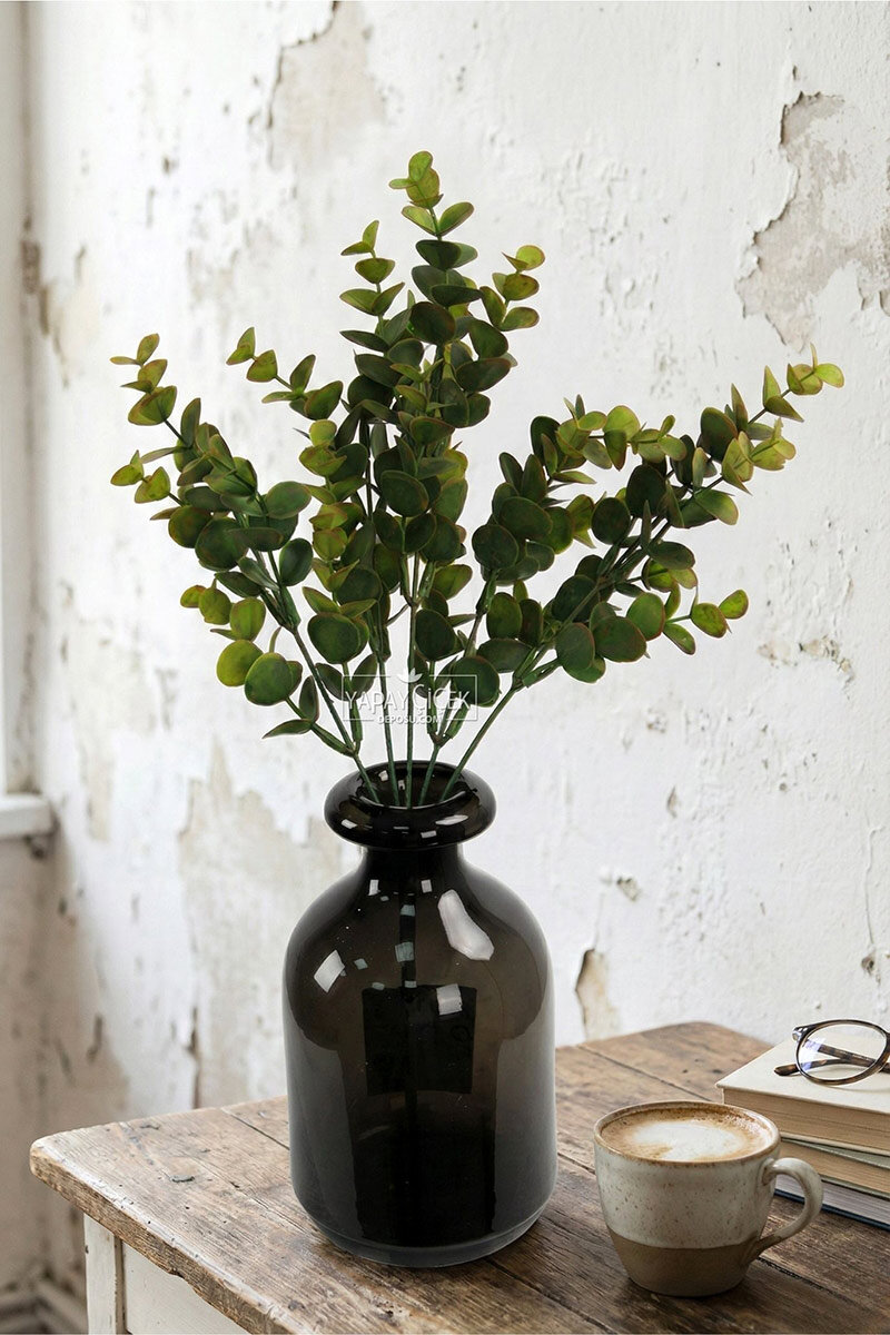 Yapay Yeşillik 5 Dallı Güz Okaliptusu, doğal okaliptus yaprak formunu yansıtan tasarımıyla dekorasyonlara modern ve ferah bir hava katar. Dengeli dal yapısı ve dolgun görünümü sayesinde hem tek başına vazoda hem de çiçek aranjmanlarında tamamlayıcı olarak kullanılabilir.