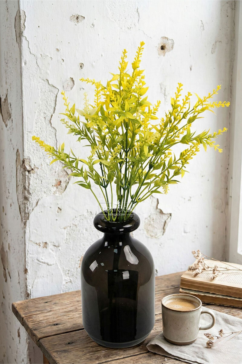 Yapay Bitki 5 Dallı Püsküllü Lavanta Demeti, zarif püsküllü çiçek formu ve doğal görünümüyle bulunduğu ortama ferah ve romantik bir atmosfer kazandırır. İnce ve hareketli yapısı sayesinde vazolarda tek başına kullanılabilir ya da aranjmanlara tamamlayıcı olarak eklenebilir.