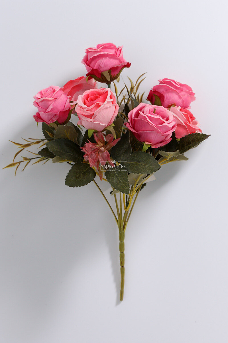 Yapay 7li İri Kafa Küçük Gül Demeti Pembe